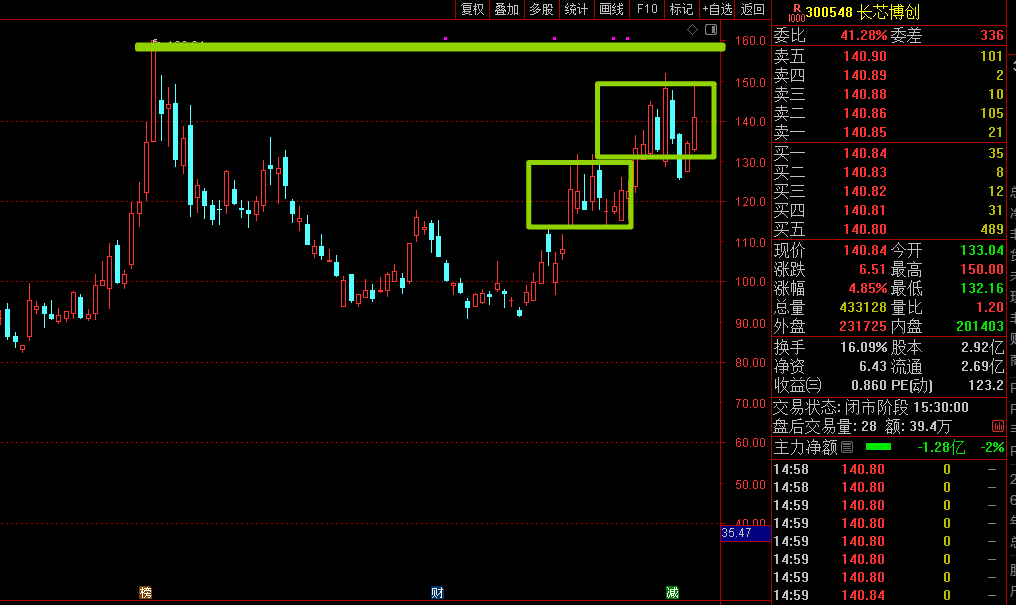 长芯在前期高点附近震荡徘徊,想干什么呢,而且近期的走势,承接还可以,日线级别的走势,搭建了两个中枢了,上一轮回调,也没跌破前期中枢的高点,这么看来,他有突破前期高点的想法啊,就是这个位置不确定性挺大的,要是新高能更把握些,新高之后从缠论的角度看,也是符合三M的位置,不过这个位置轻仓试错也行啊,博弈下他能新高行情,等出现三M的位置再加呗。