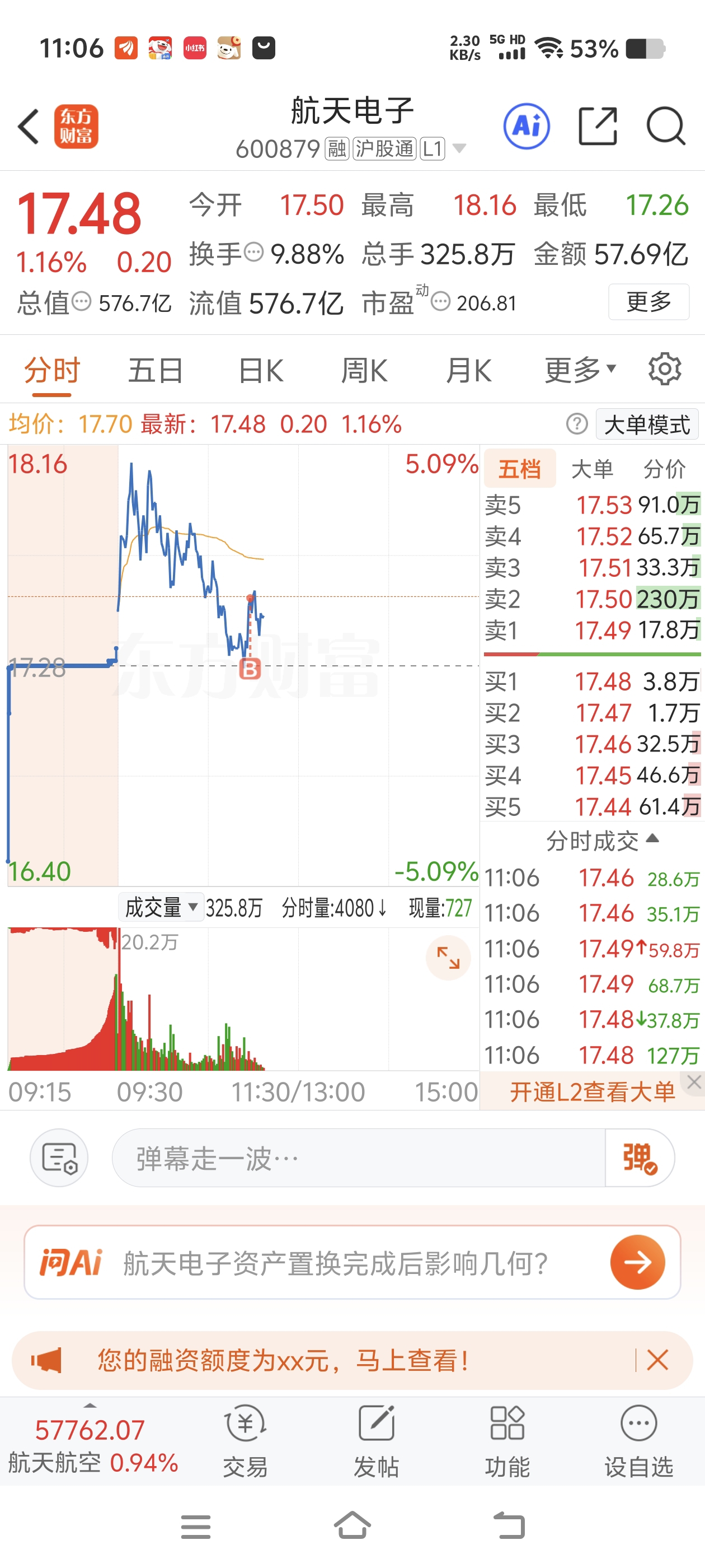 $航天电子(SH600879)$ 兄弟们,这算追高么
