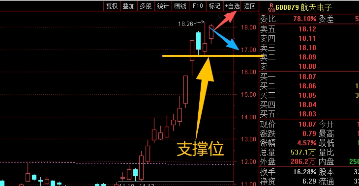 $航天电子(SH600879)$ 近期大涨的速度太快,斜率太大,下周如果不能继续拉高的情况下,超短回落的概率比较大,适合做高抛,较低的横线位置做支撑点,能稳住都没问题,有效跌破就要防着回落风险了,需要控制仓位应对。#炒股日记# #收盘点评#