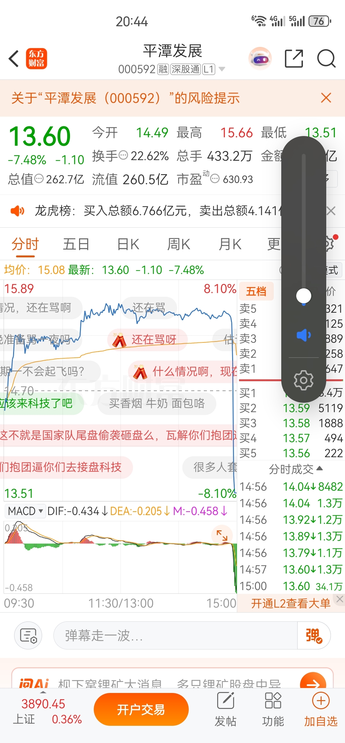 知足吧,咱们至少尾盘猛拉,平潭发展尾盘由正5一下子跌倒负八,十三个点的落差。到现