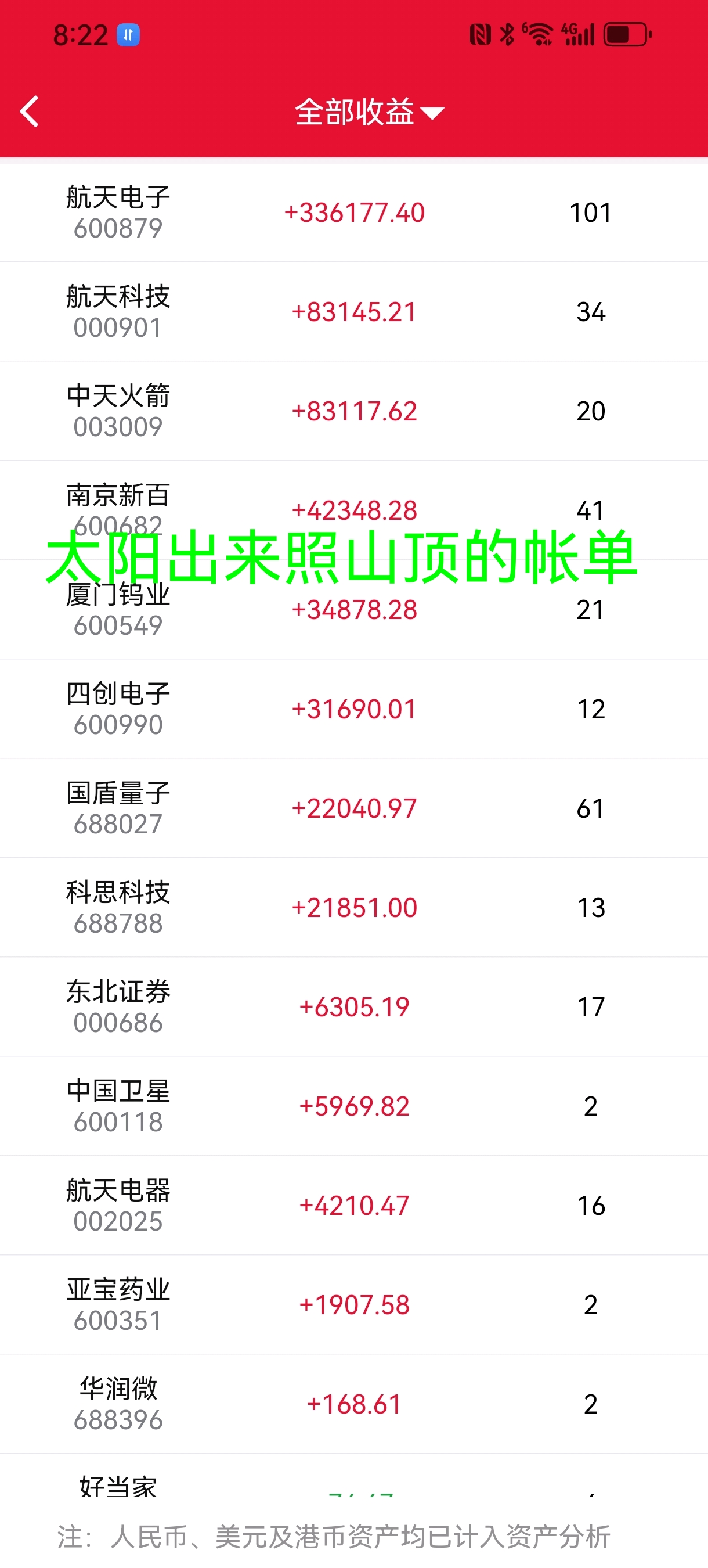 时也,命也我拿航天电子10年了,今年解套挣钱啦