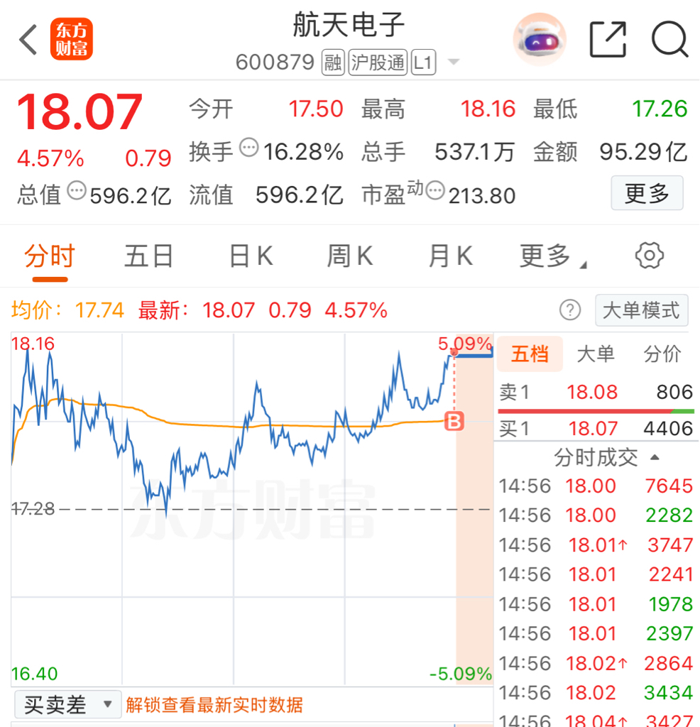 $航天电子(SH600879)$ 600亿盘子家人们要闹上天吗?个人只是图个安稳不需要大开大合。