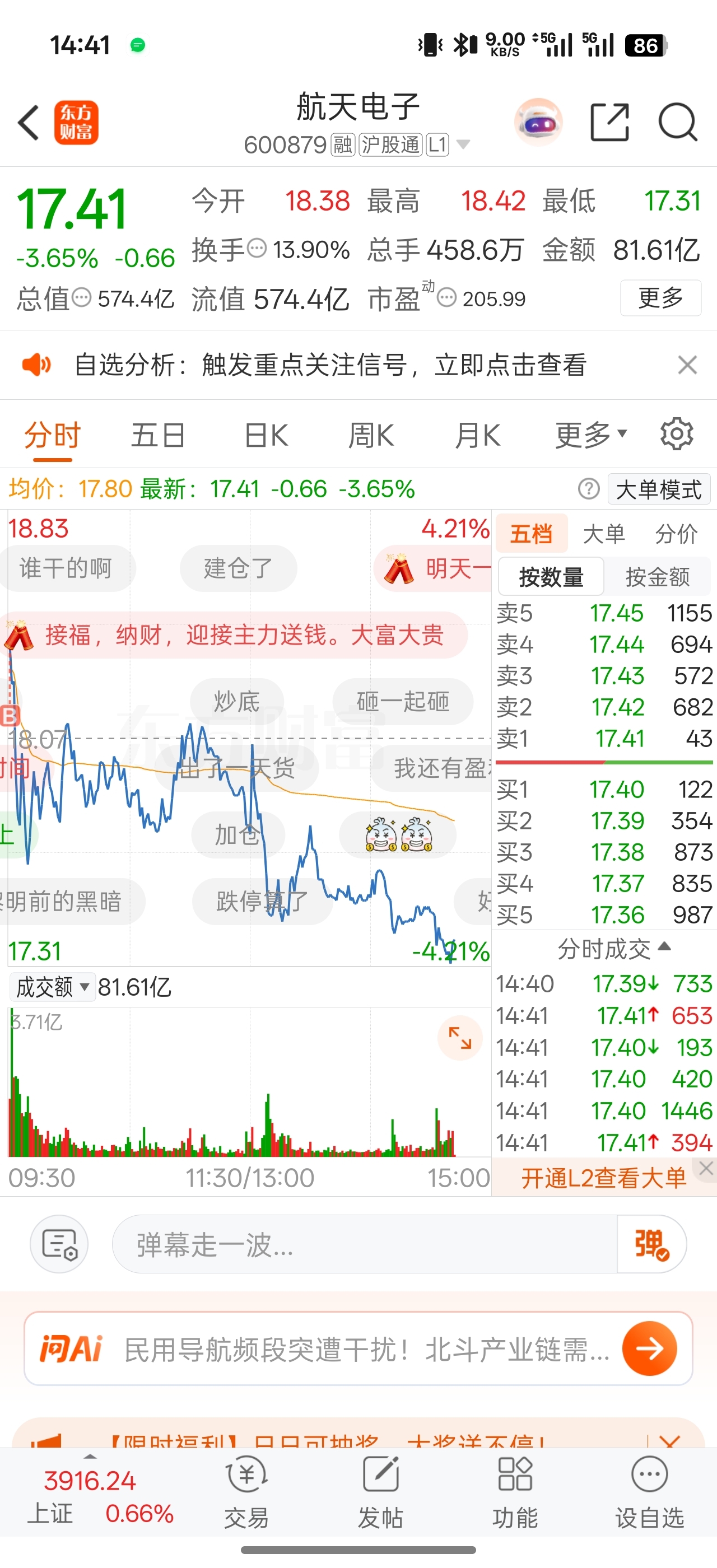 $航天电子(SH600879)$ 辜负我对你的信任!