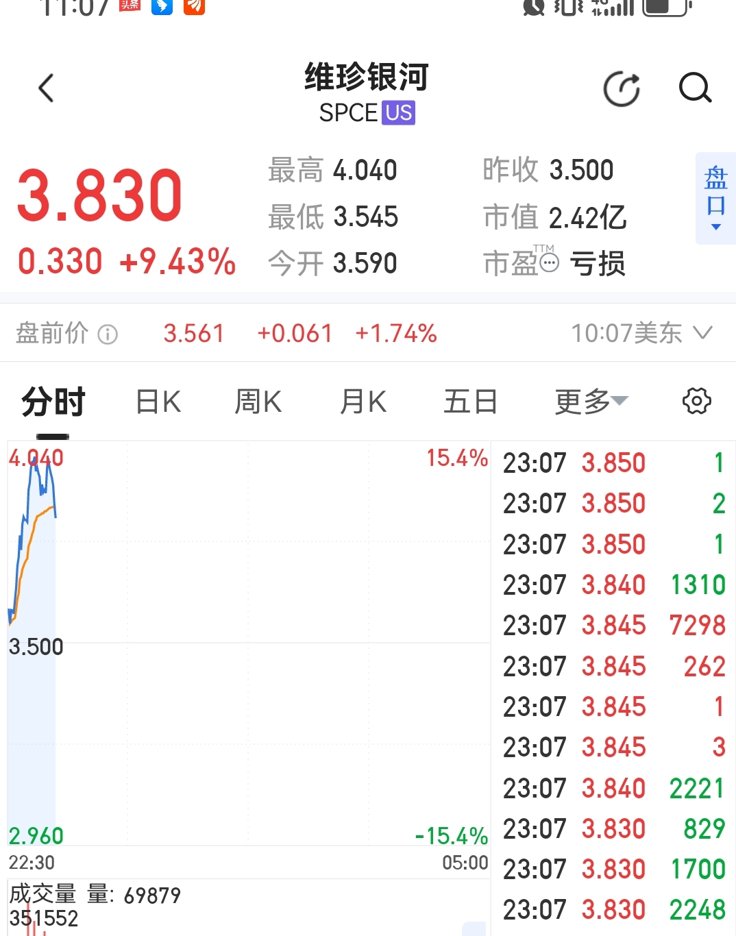 $航天电子(SH600879)$ 美股,维珍银河,今晚继续大涨。