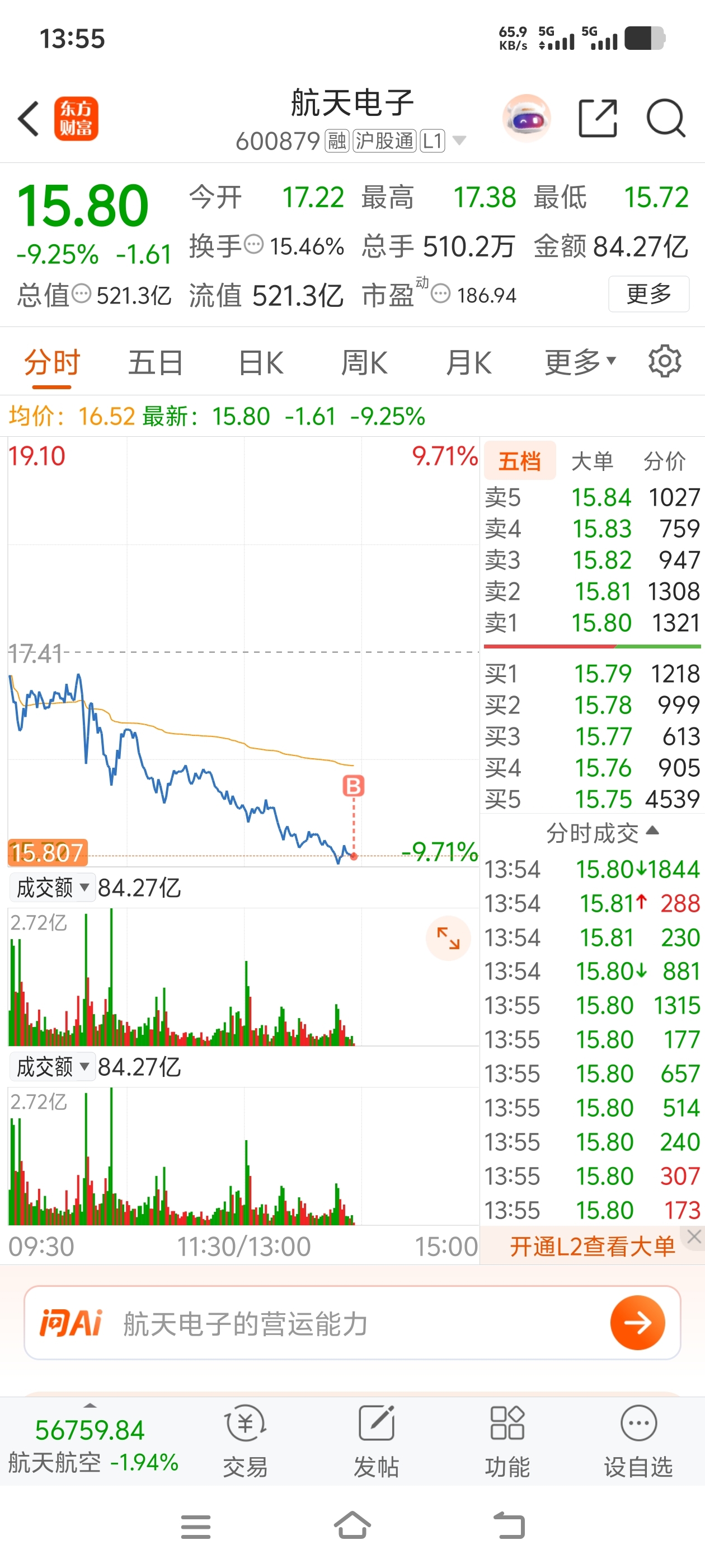 $航天电子(SH600879)$ 兄弟们我来陪你们了