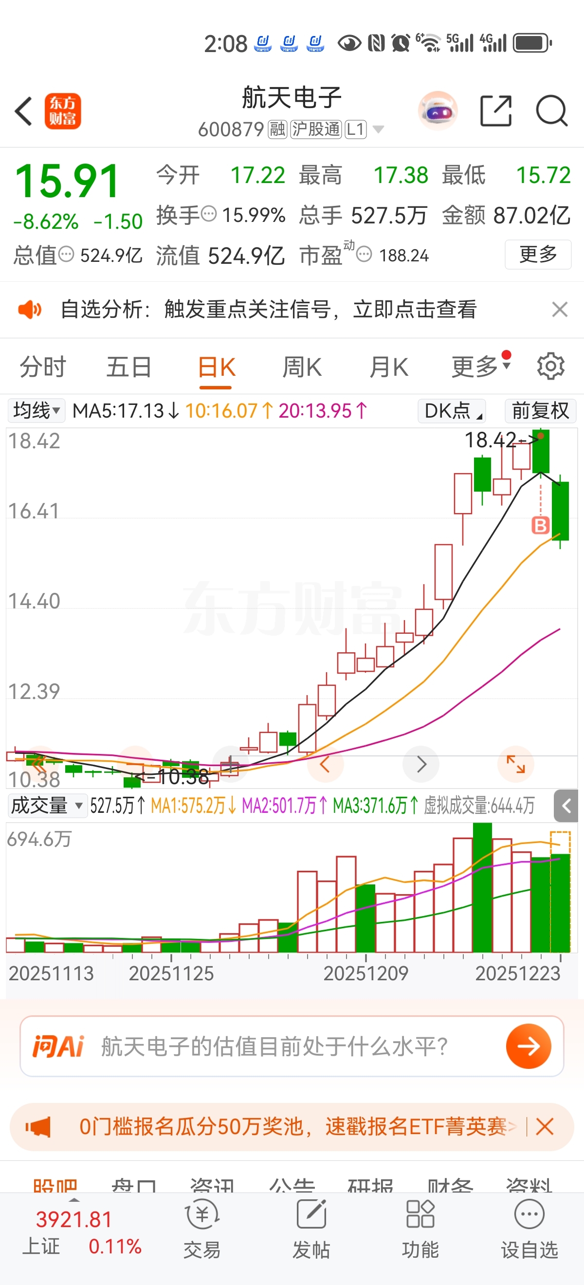 $航天电子(SH600879)$ 啊啊啊啊!!