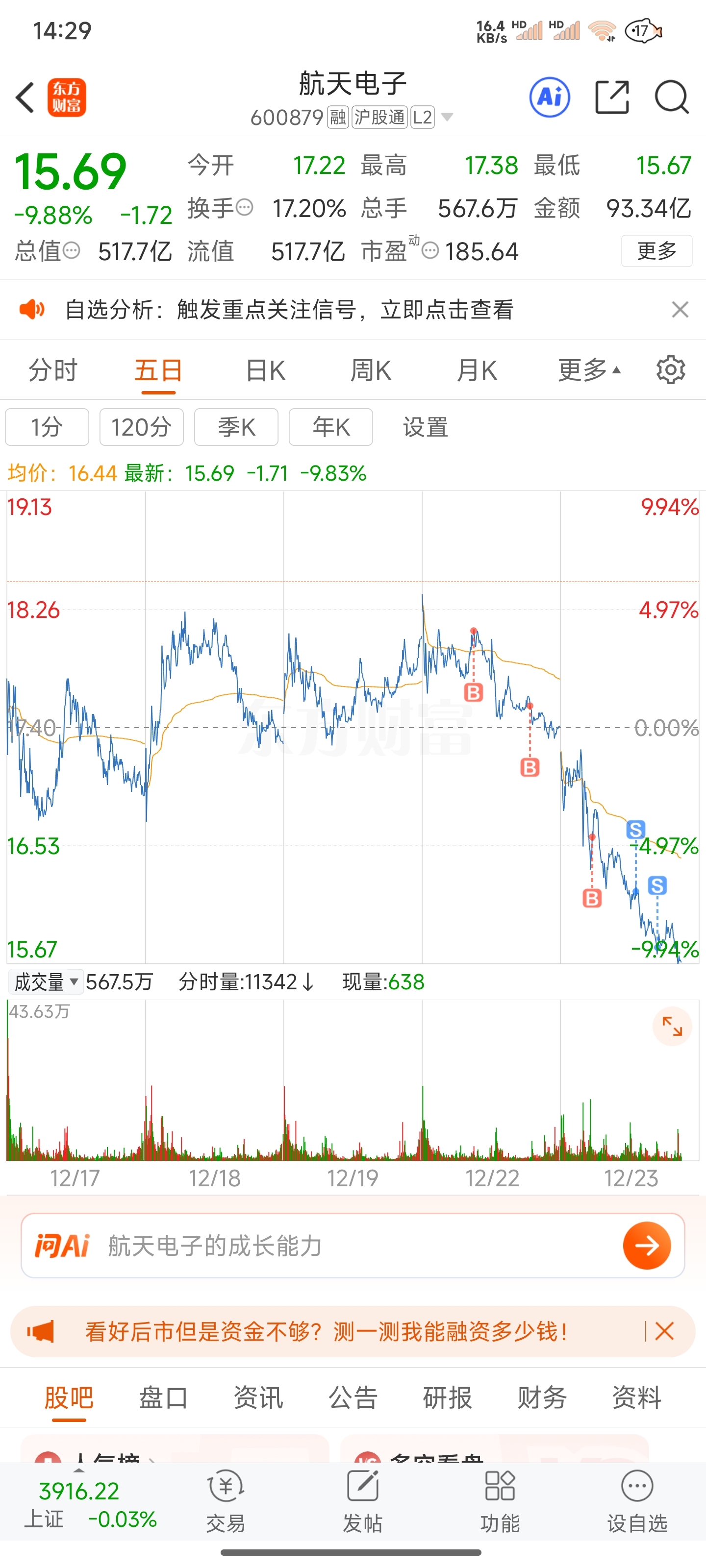 $航天电子(SH600879)$ 认了认了,不玩了,明天开盘跑,休息几天,这几周末鬼市场