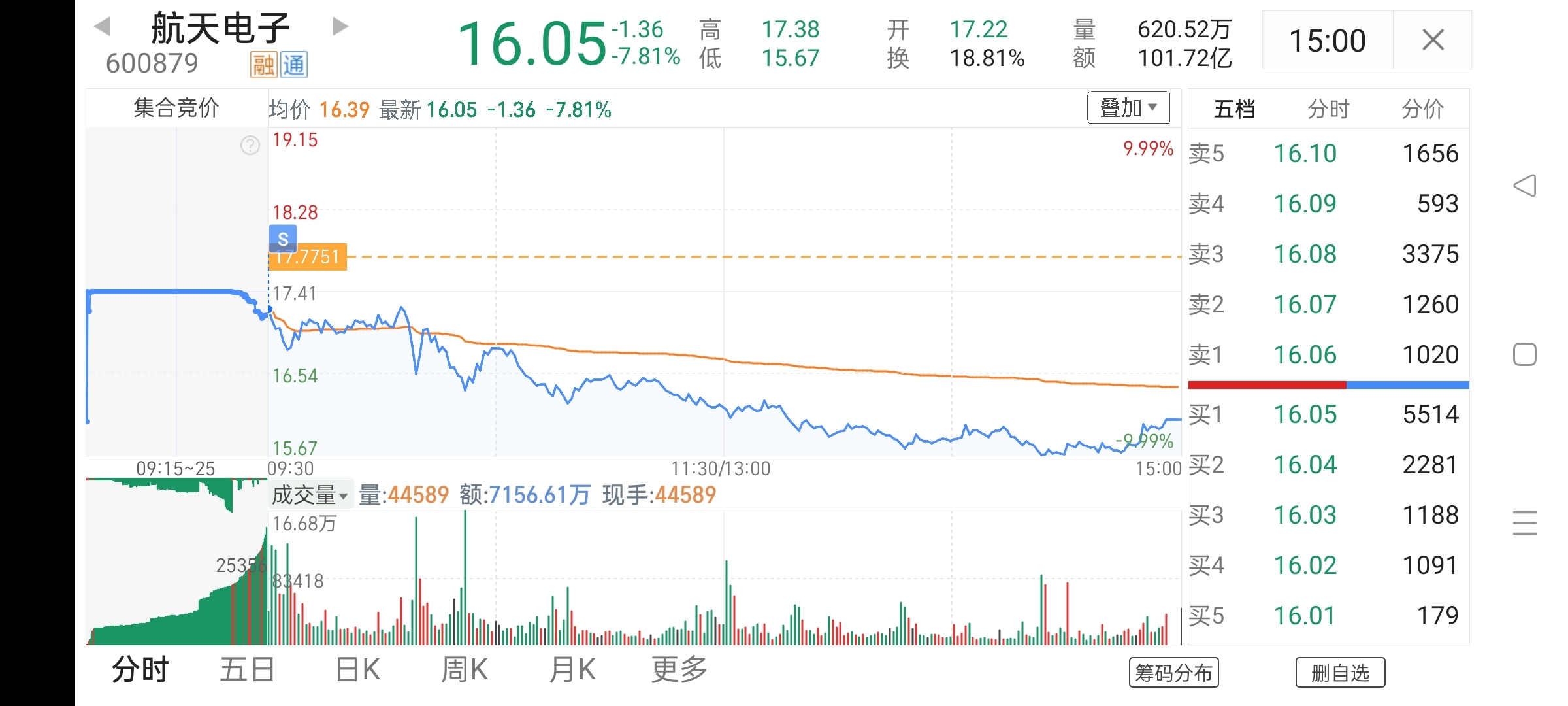 $航天电子(SH600879)$ #炒股日记#