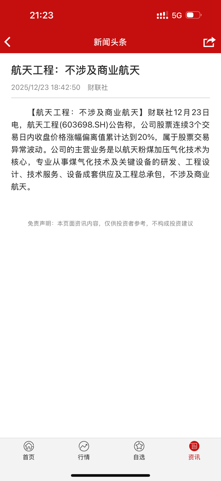 $航天电子(SH600879)$ 不涉及的都涨停,涉及的几乎跌停,