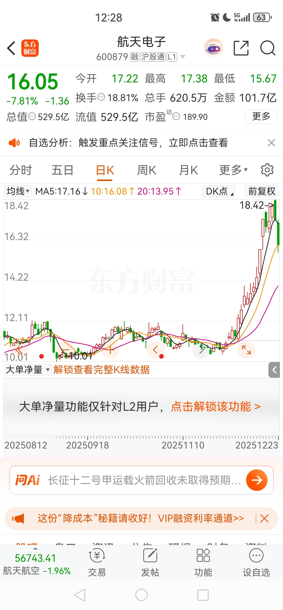 $航天电子(SH600879)$ 航天电子作为商业航天核心参与单位,从底部10块钱涨到现在16块钱,才60%的涨幅,真心不多,后面至少也能翻个两三倍吧