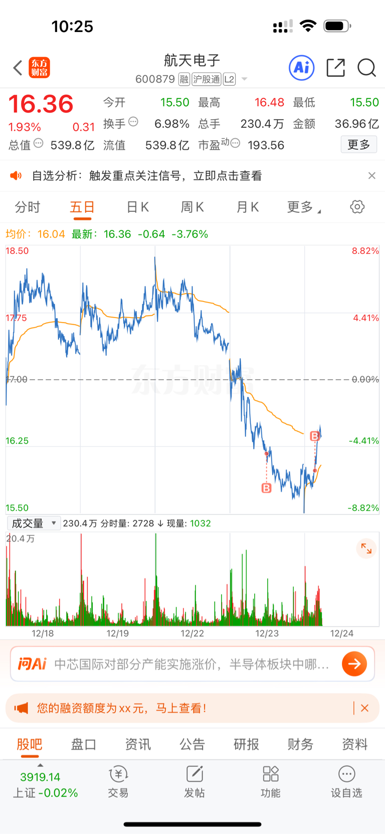$航天电子(SH600879)$ 能给7个点吗
