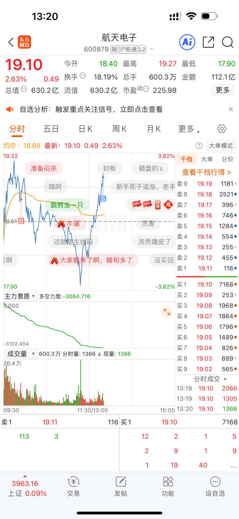 $航天电子(SH600879)$ 谢谢你,还好。早盘吓死了。T了1.4个点,非常感谢了