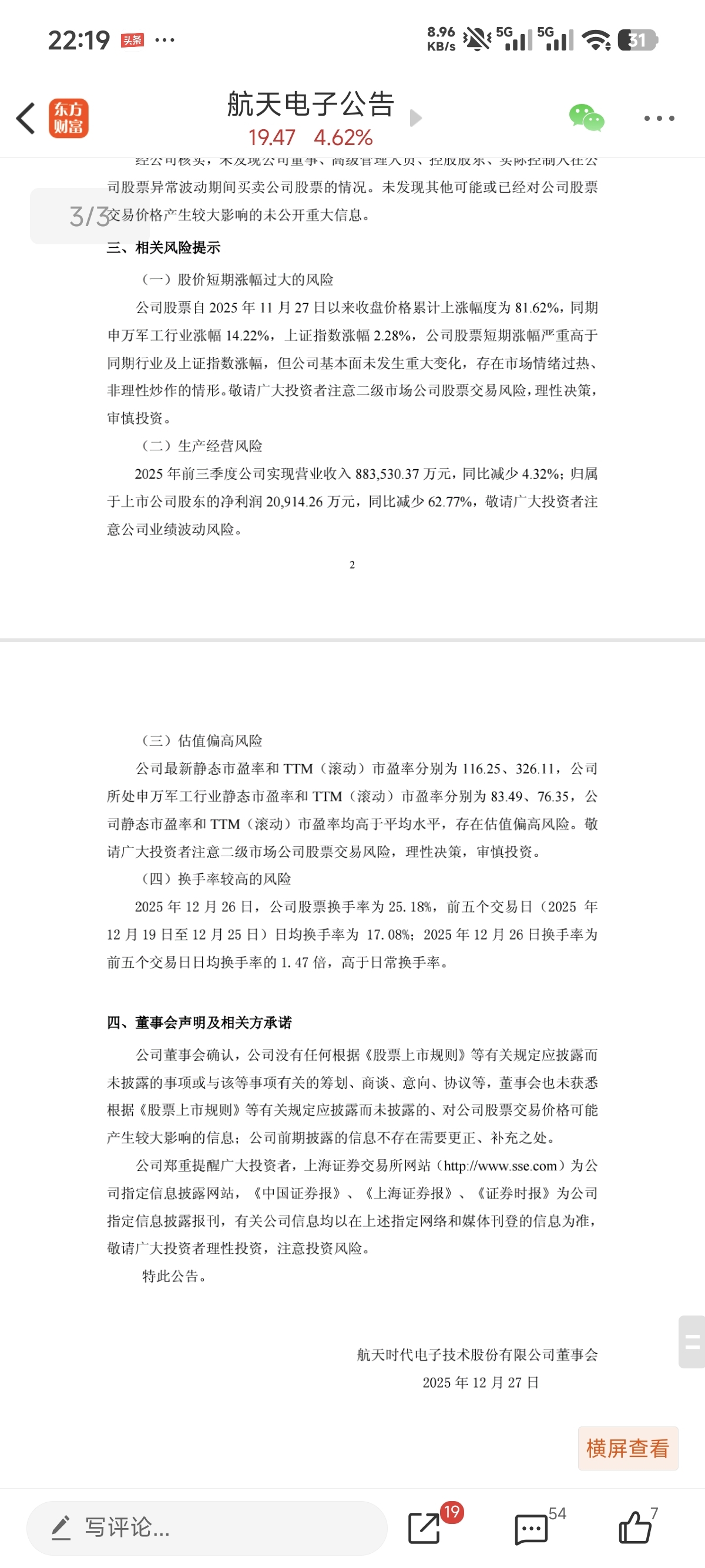 $航天电子(SH600879)$ 周一估计要跌停了,明牌不让涨