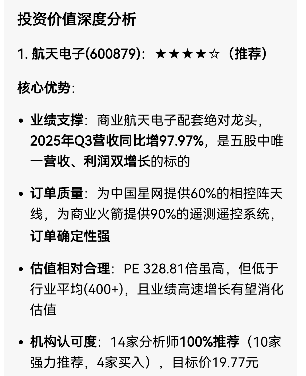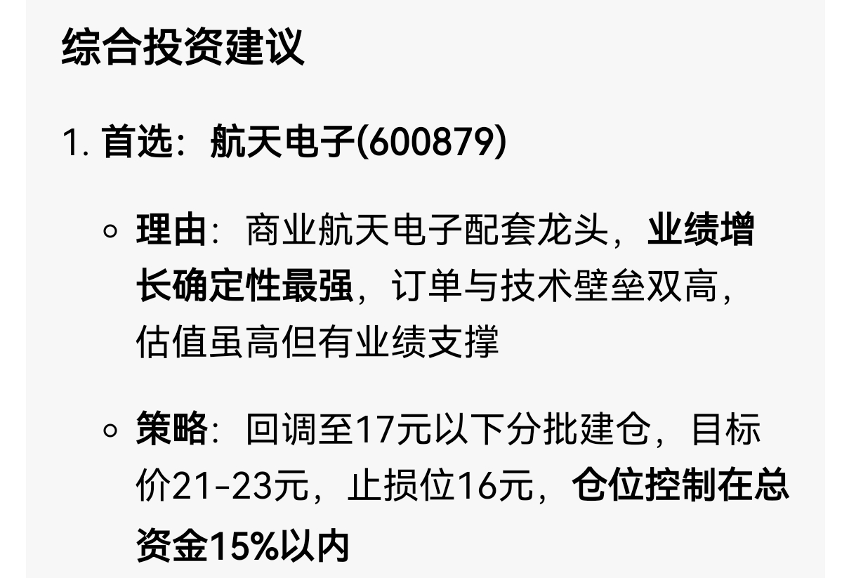 问了一下豆包,让它结合股价信息,评价下几个热门的航天股票哪个值得投资。航天电子排
