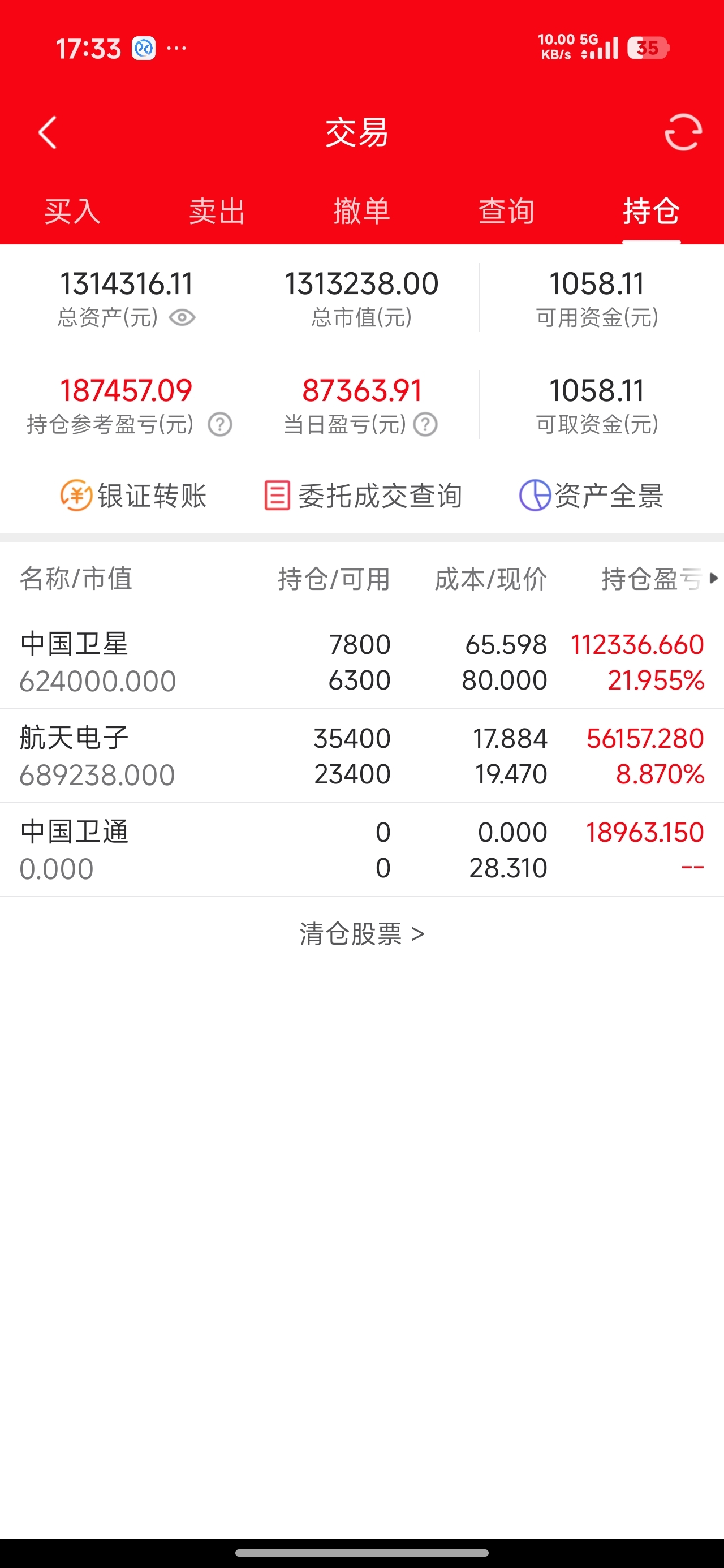 $航天电子(SH600879)$ $中国卫星(SH600118)$ 完成调仓,2026.1月持仓不动。