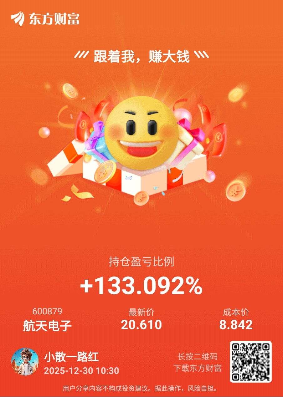 $航天电子(SH600879)$ 落袋了,兄弟们发财