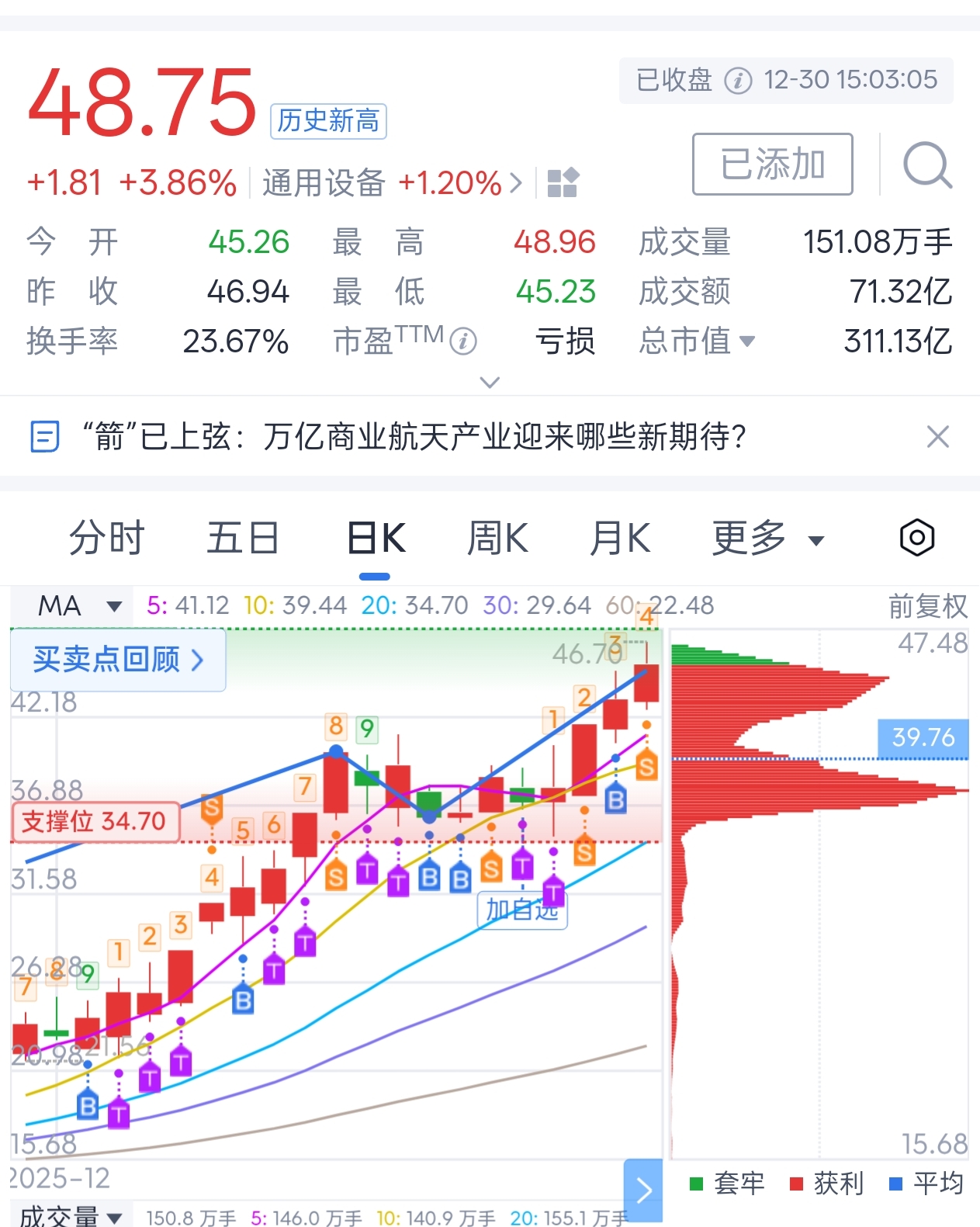 $航天电子(SH600879)$ $航天动力(SH600343)$ 电子今天真是不争气啊。昨天半仓没卖,今天水下加满仓位。盘中富贵赚一万五,冲高8个点减坚持没卖。想着格局格局,结果格局到下午平盘卖了,就赚就剩水下低吸的5000股了。反手吧资金砸进了动力,还是动力从不亏待我啊,不枉我一直追你