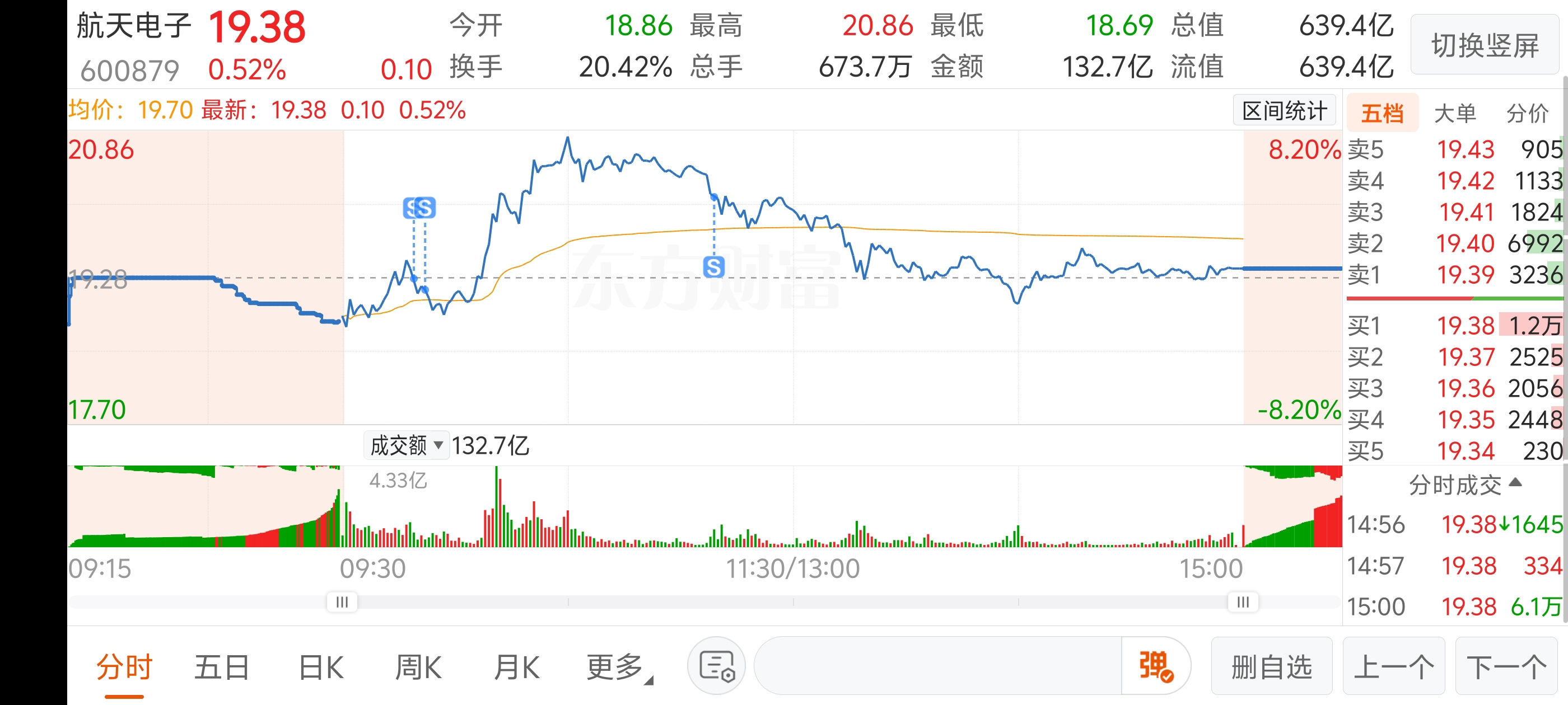$航天电子(SH600879)$ 心脏受不了,还是出了吧
