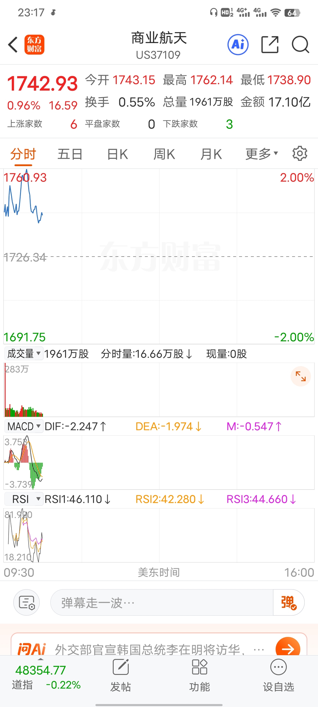 $航天电子(SH600879)$ 美股商业航天发展大涨