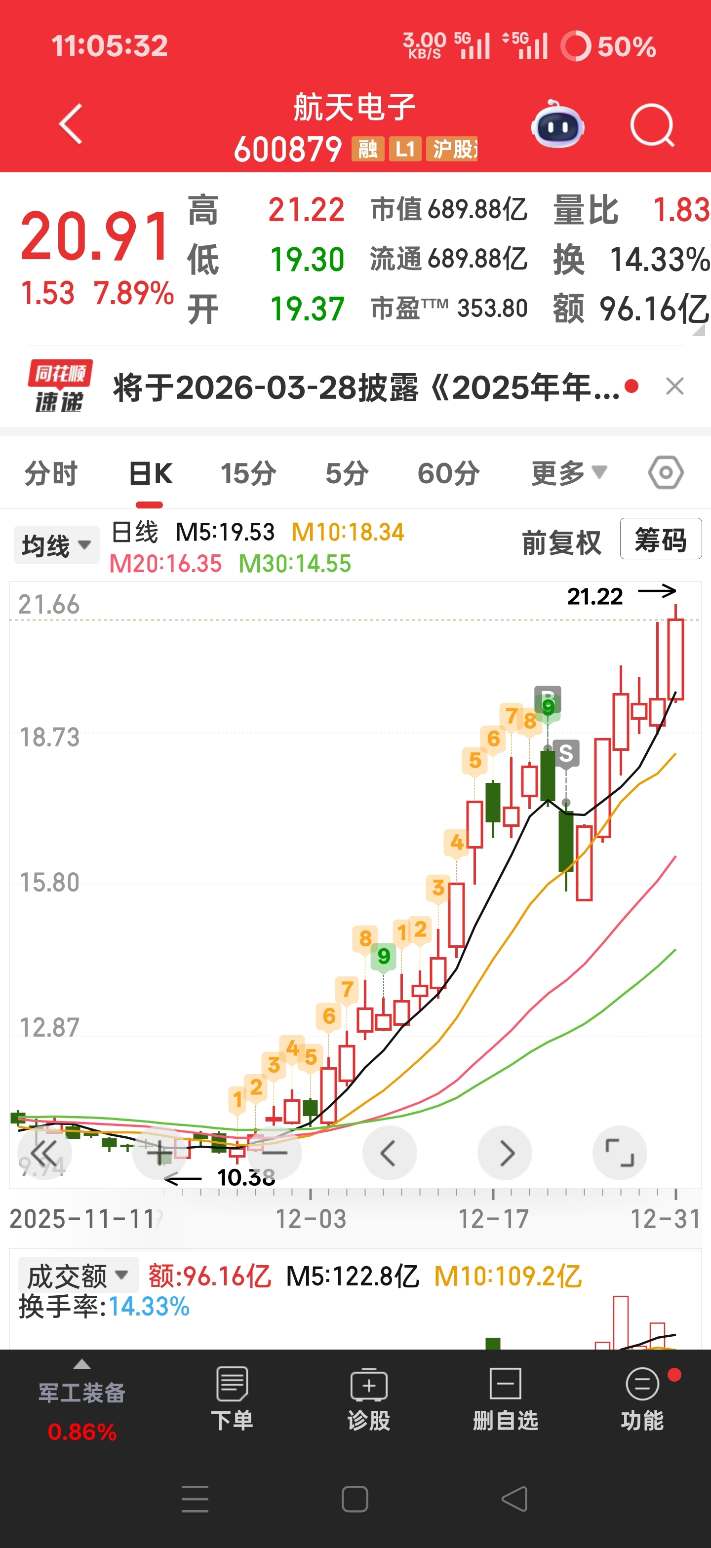 $航天电子(SH600879)$ 出门都不敢说买过航天股,一买就吃了个跌停