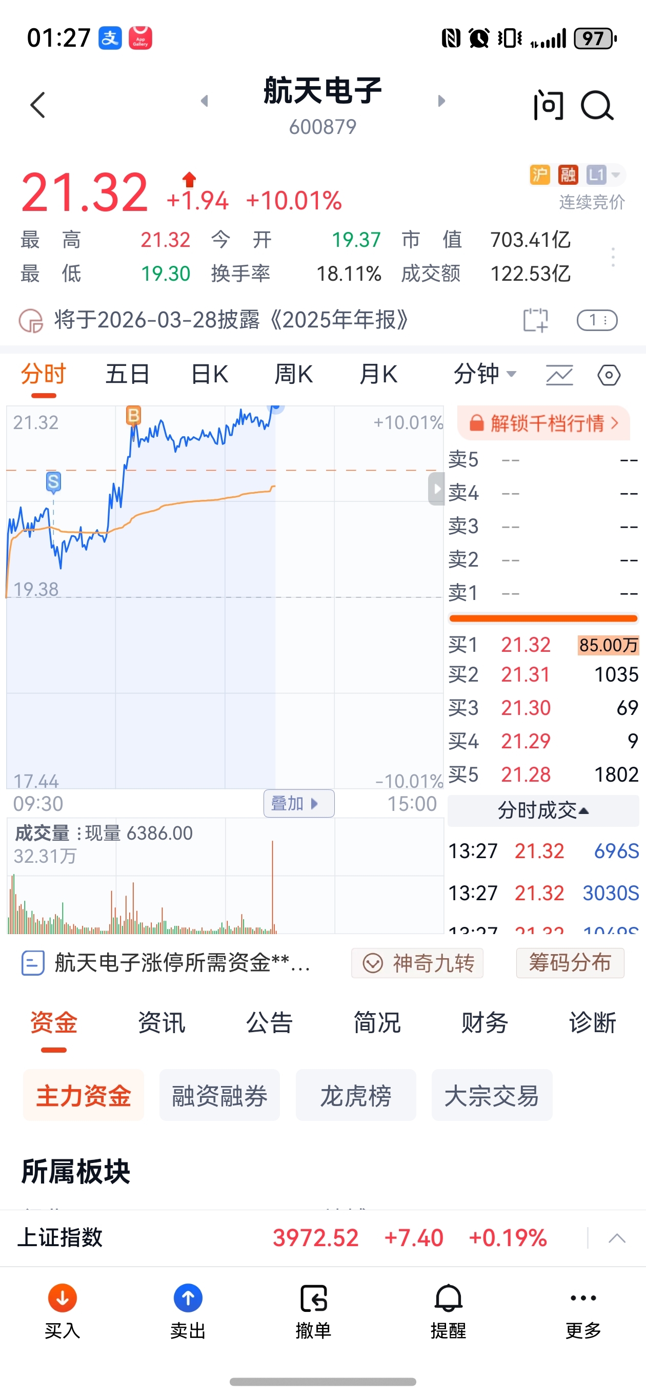 $航天电子(SH600879)$ 跟我格局到30