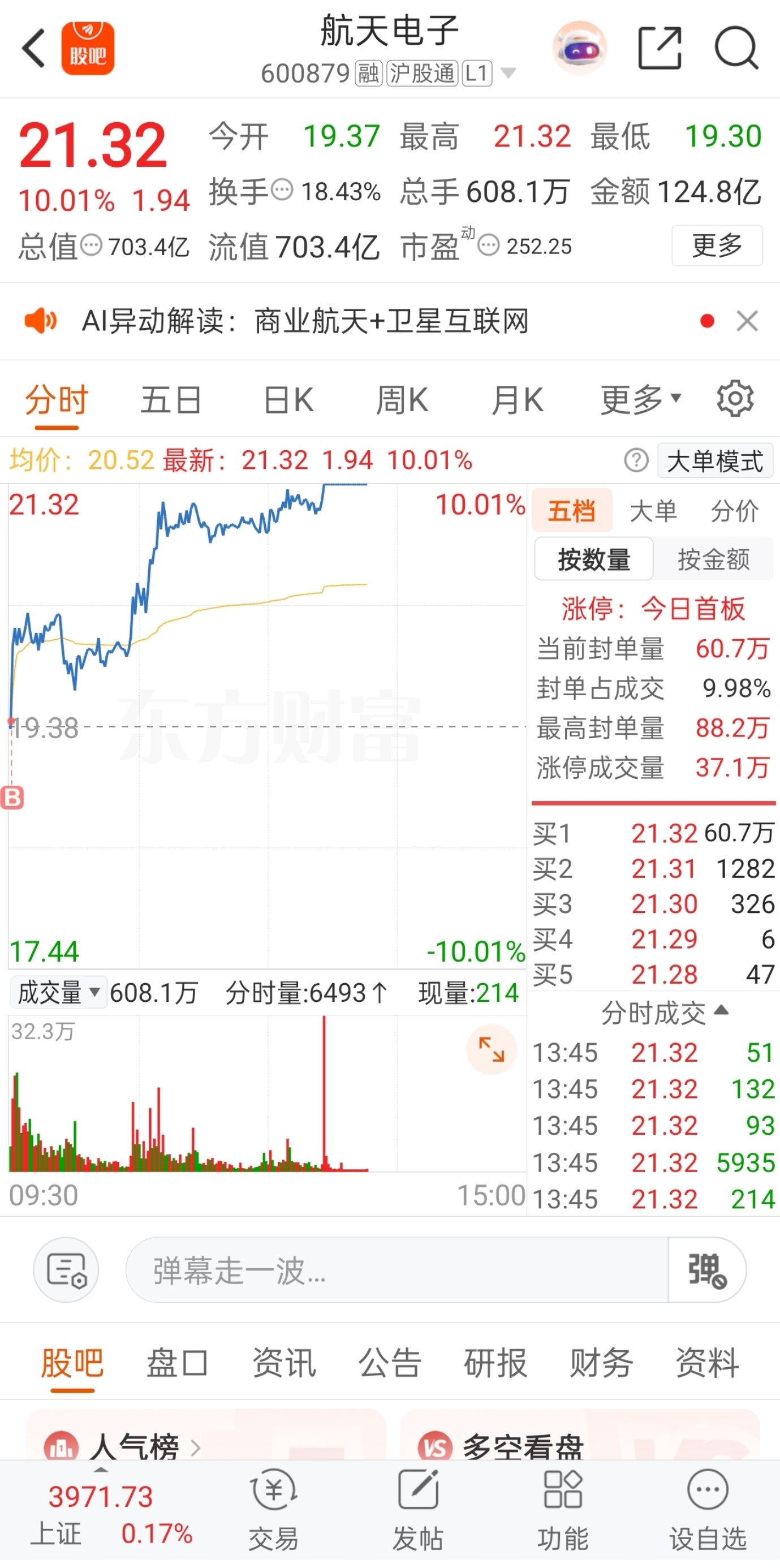 早盘介入的个股$航天电子(SH600879)$
