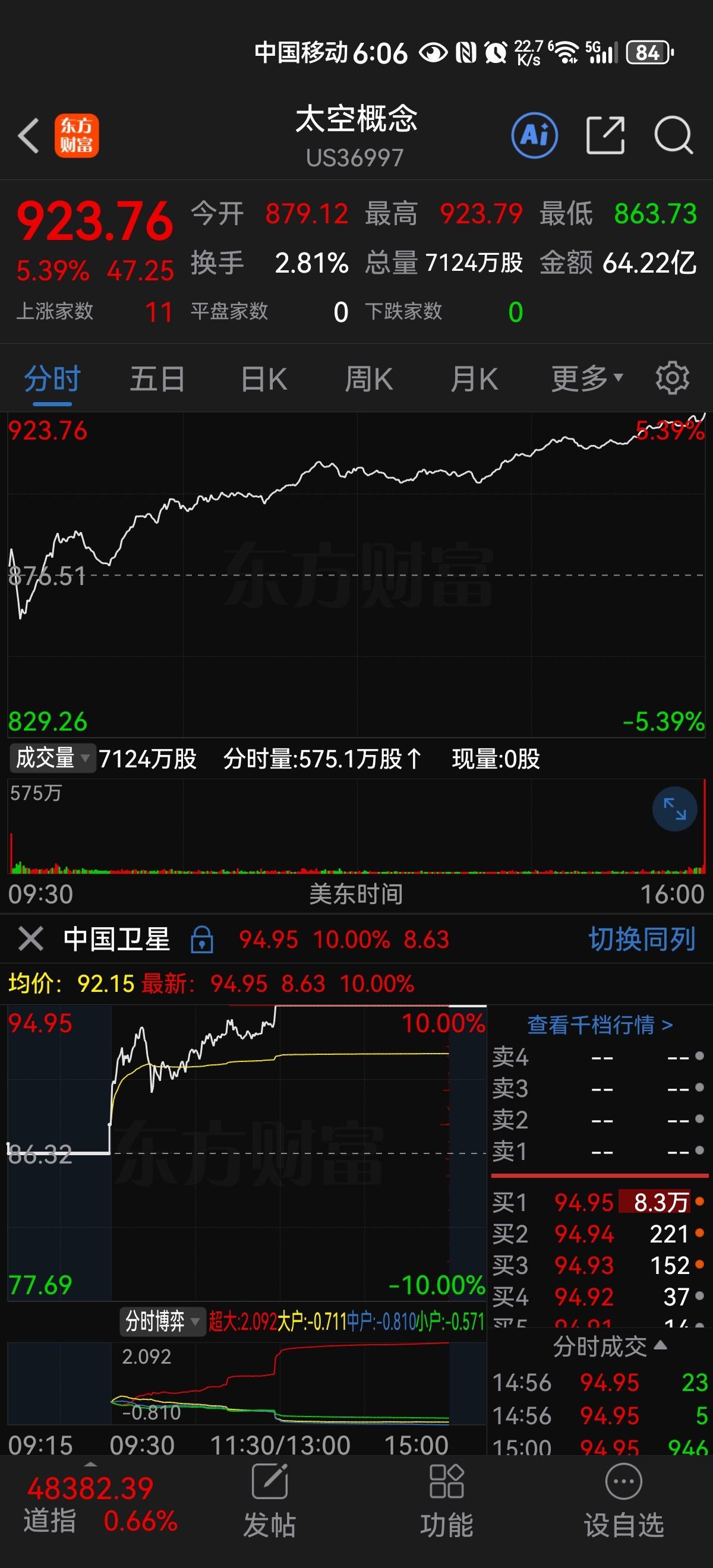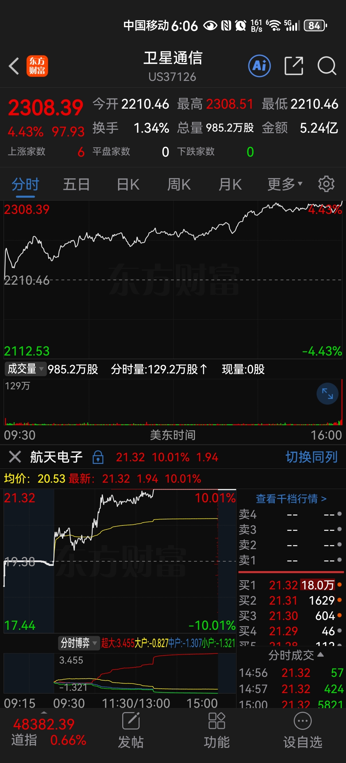 中国卫星,航天电子一字涨停毫无悬念,美股商业航天,卫星互联网,太空概念暴涨为中国