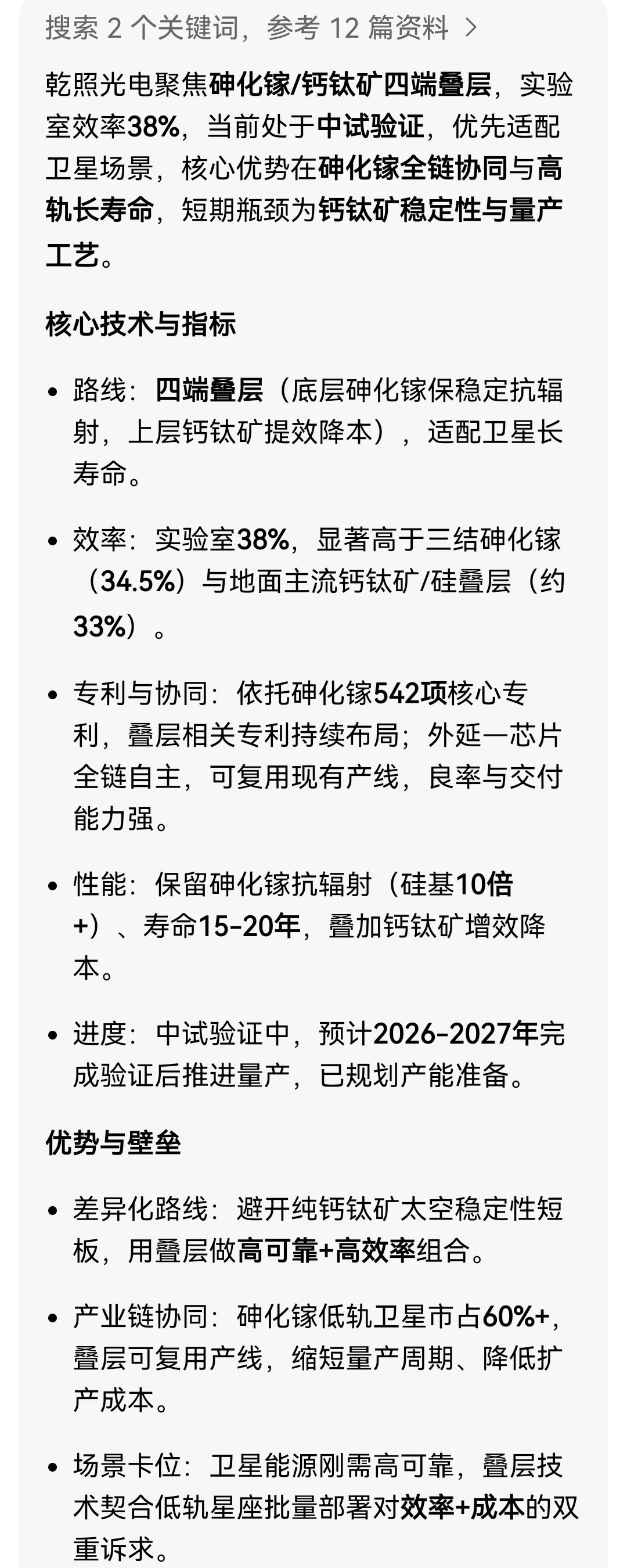 不得了,光电转化率38%,不仅国内卫星太阳能电池占比60%+,还间接供货马斯克星