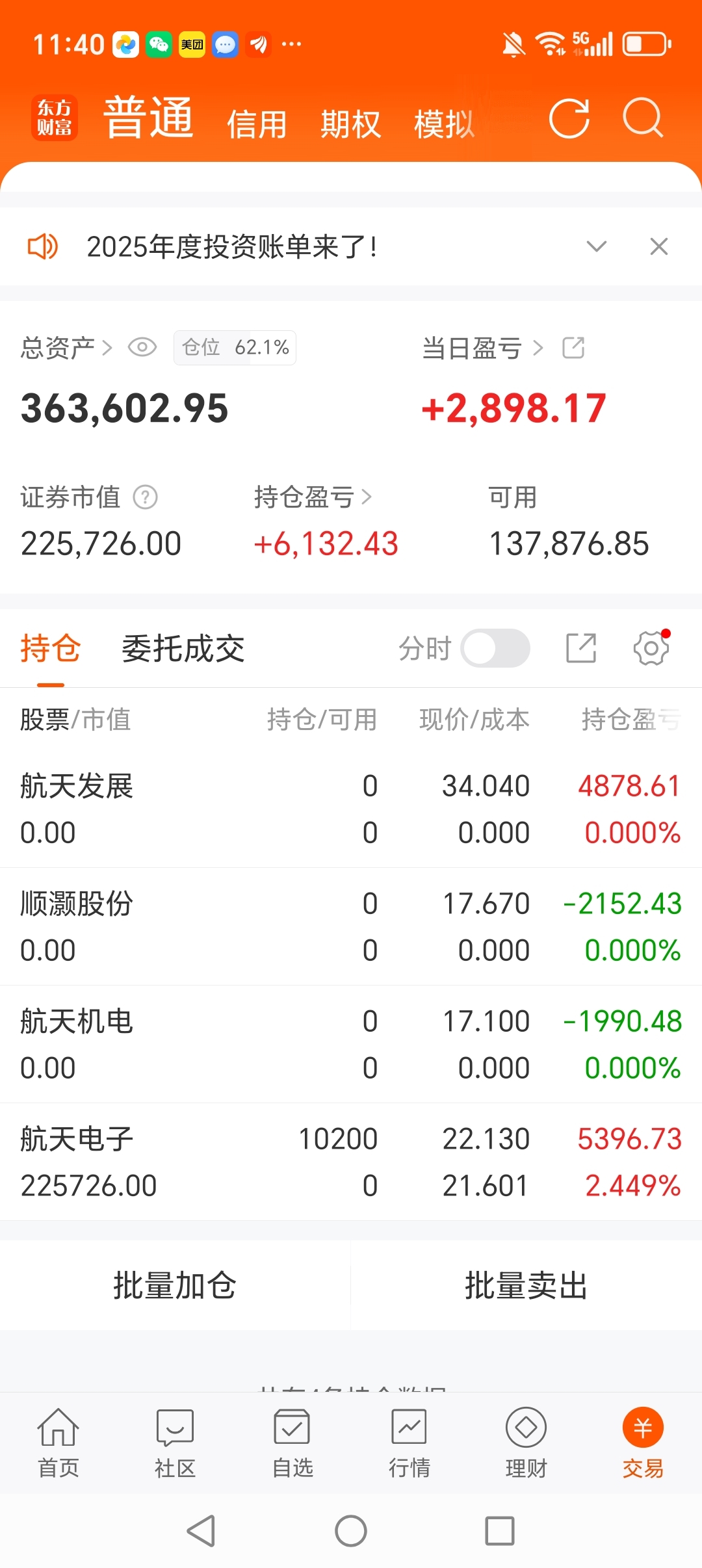 玛德,意志力不够坚定!绿盘没有加满!现在不敢加了!下午怎么弄!同志们!剩下的仓位