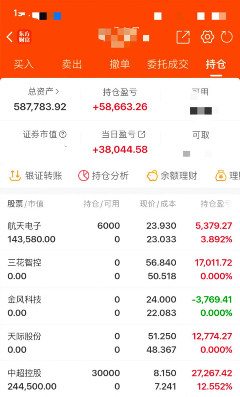 目前持有:$航天电子(SH600879)$ $中超控股(SZ002471)$
