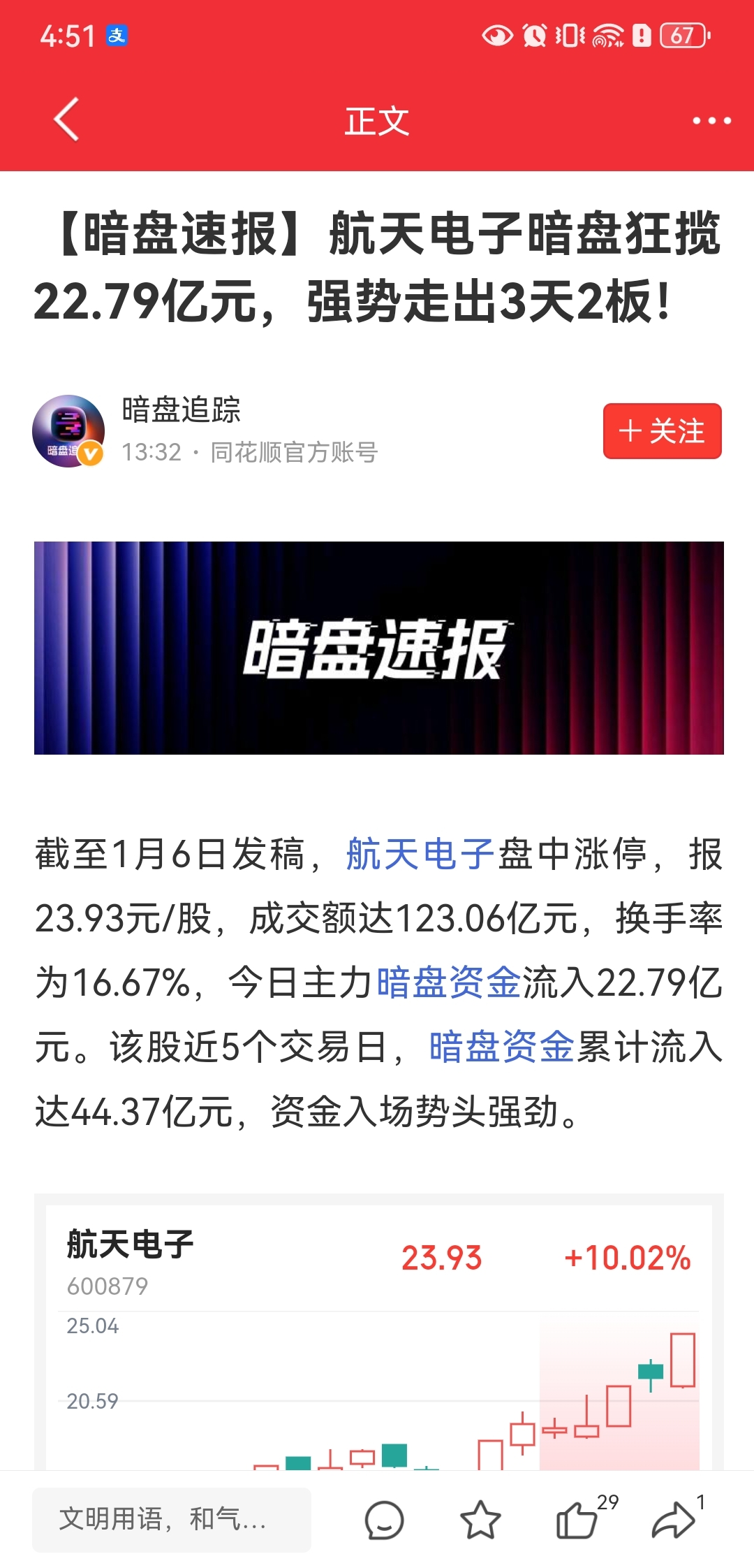 $航天电子(SH600879)$ 暗盘最近流入不少,说明越来越一致了。