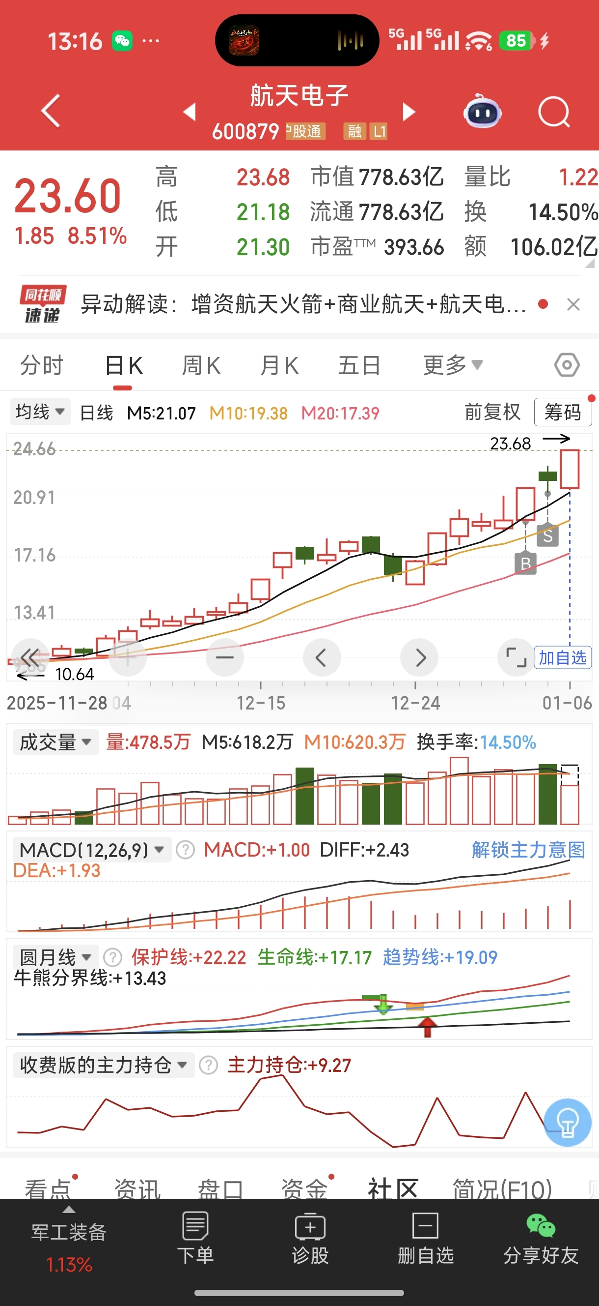 $航天电子(SH600879)$ 我是韭菜