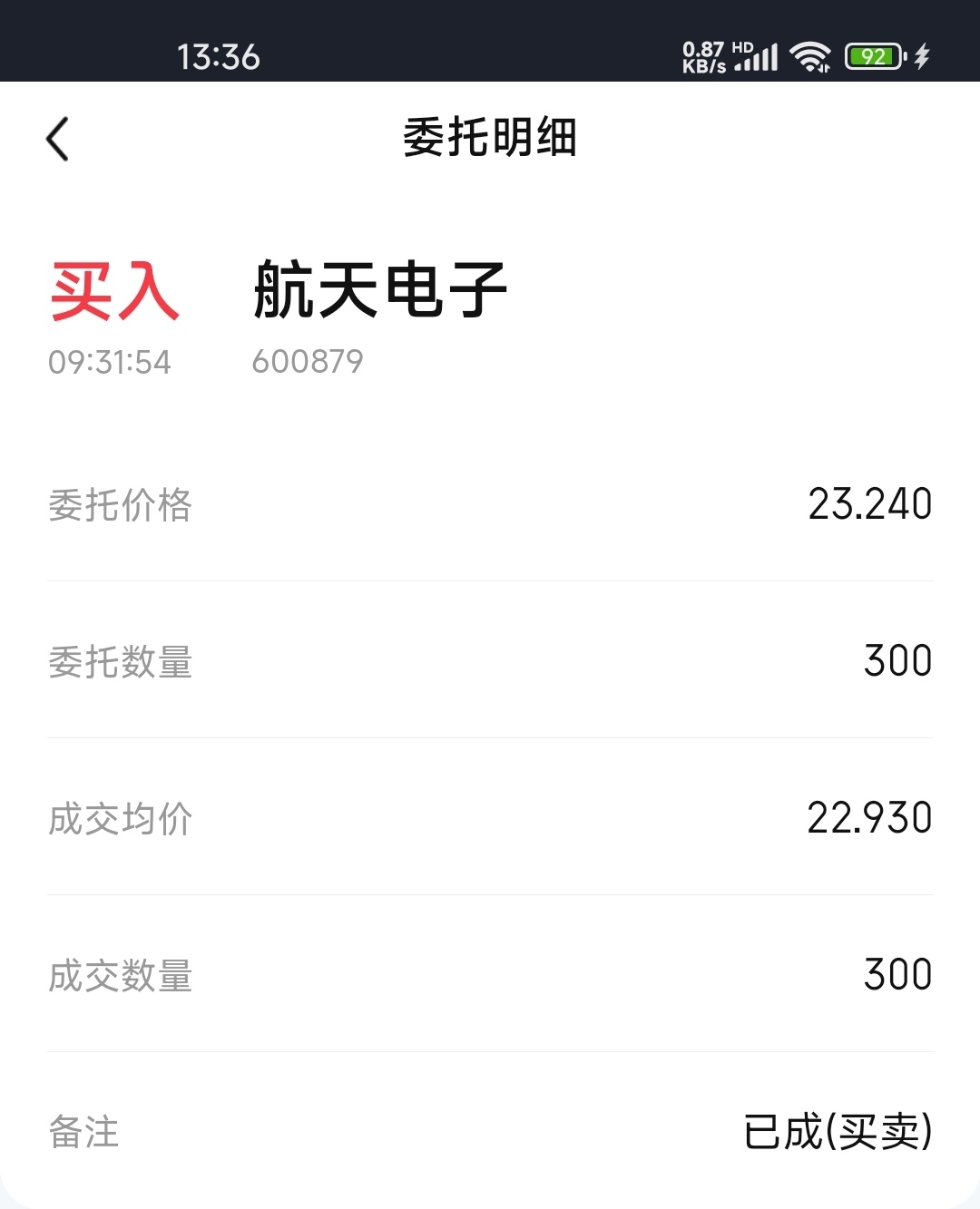 今天操盘失误,计划买航天晨光,结果买成了航天电子
