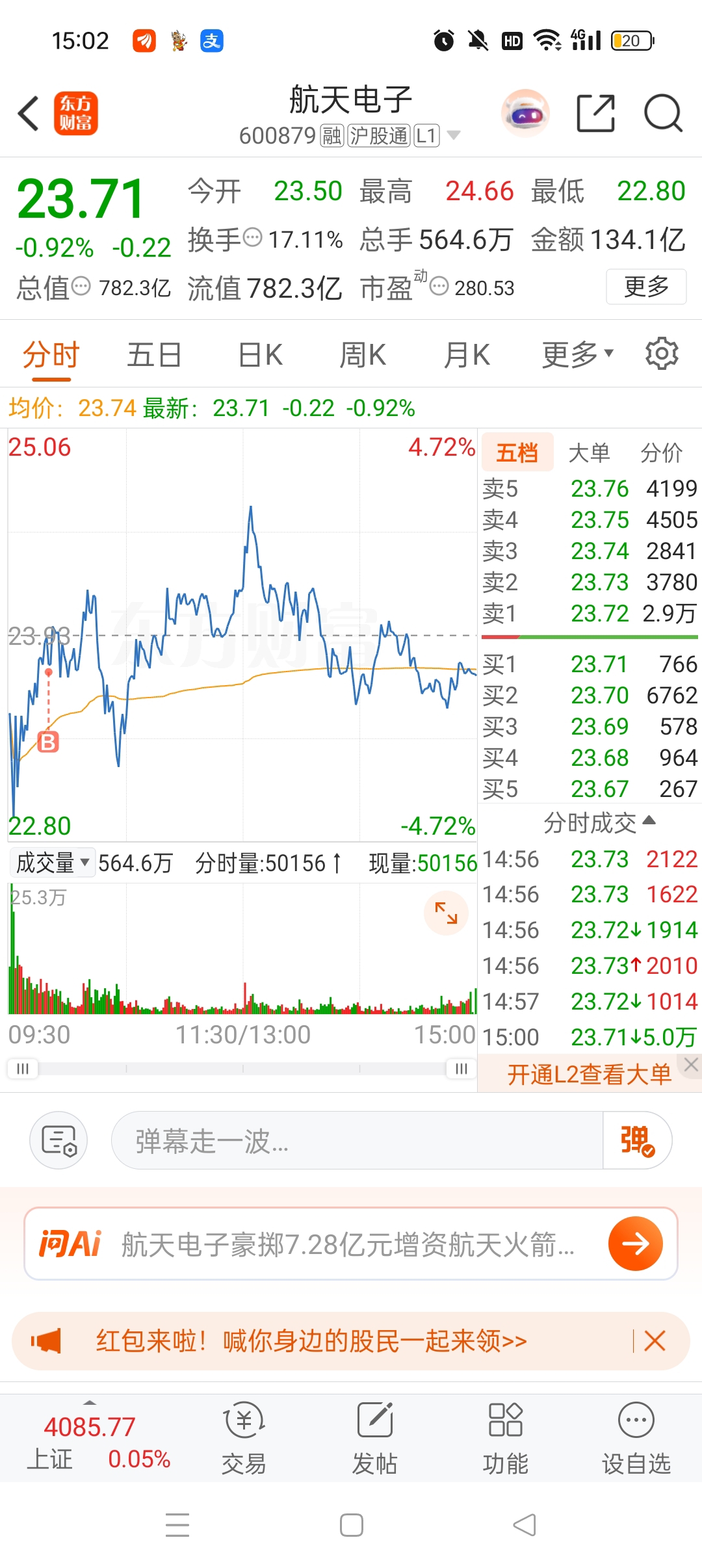 $航天电子(SH600879)$ 今天卖出长峰买进电子。大神们明天快点跑啊,再不跑来不及了。我就静静看着你们表演哈哈哈。