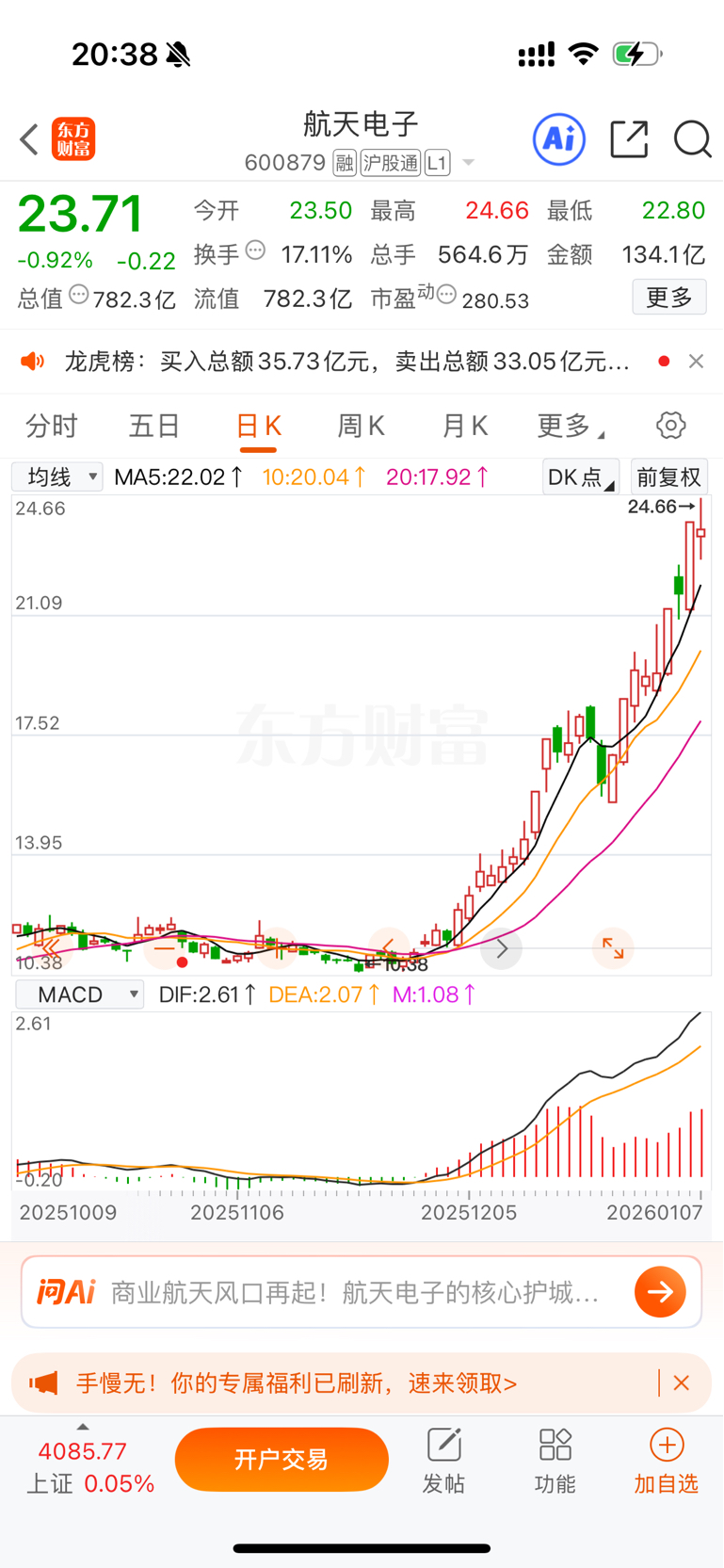 $航天电子(SH600879)$ 明天不涨停我跳黄浦江游泳