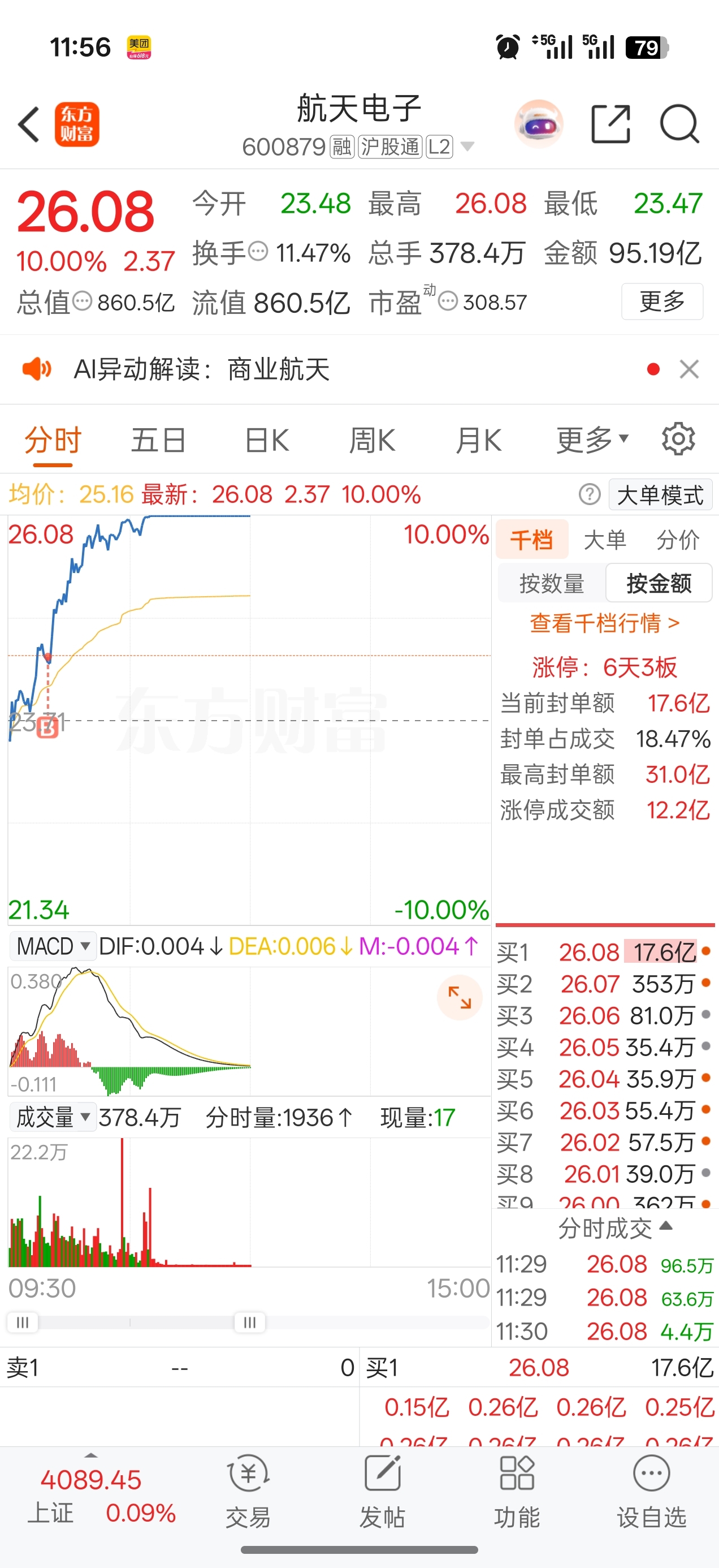 $航天电子(SH600879)$ 今天早上清仓雷科进了电子,这是什么运气,做梦一样