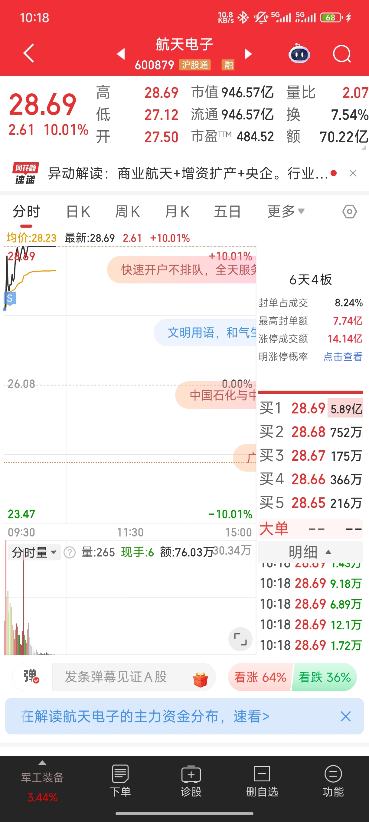 $航天电子(SH600879)$ 周五不是该下杀吗,你这是不按套路出牌啊!气!