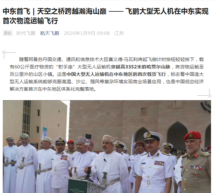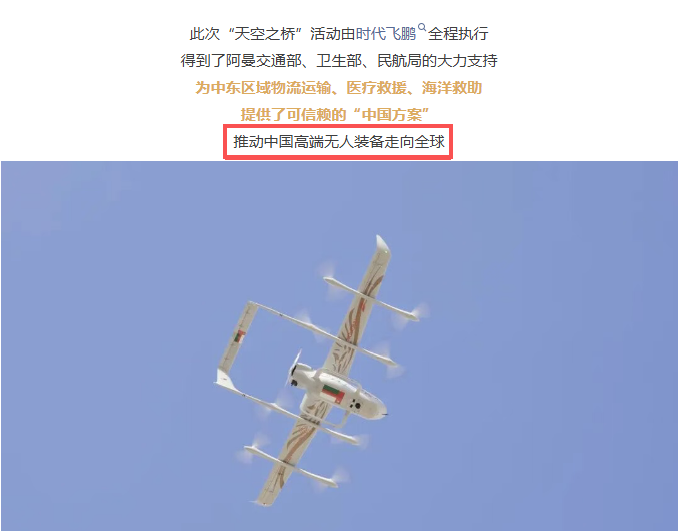 航天飞鹏大型无人机在中东实现首次物流运输飞行