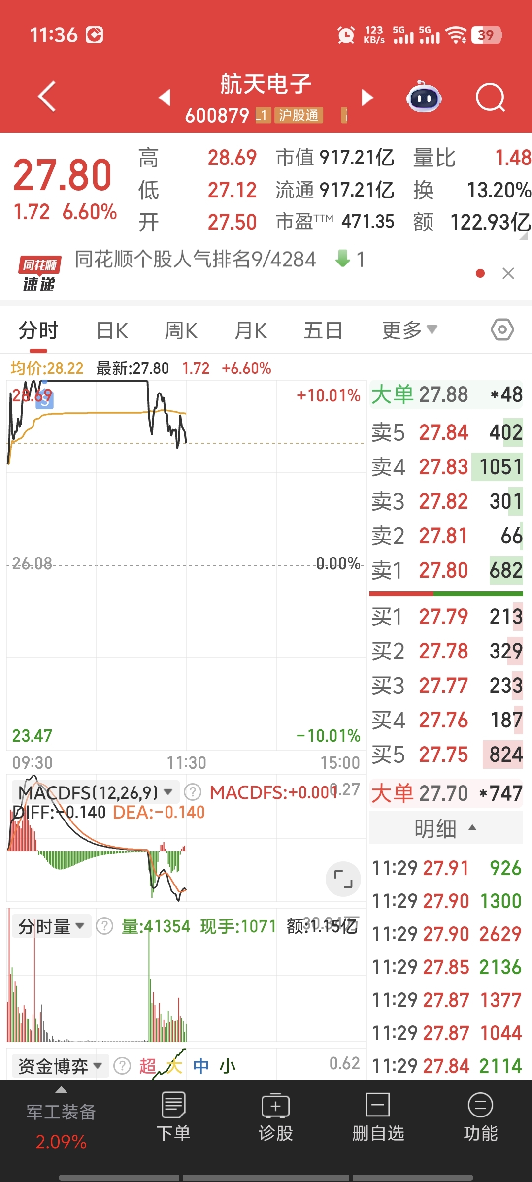 $航天电子(SH600879)$ 预感要跳水,早上板上跑的快