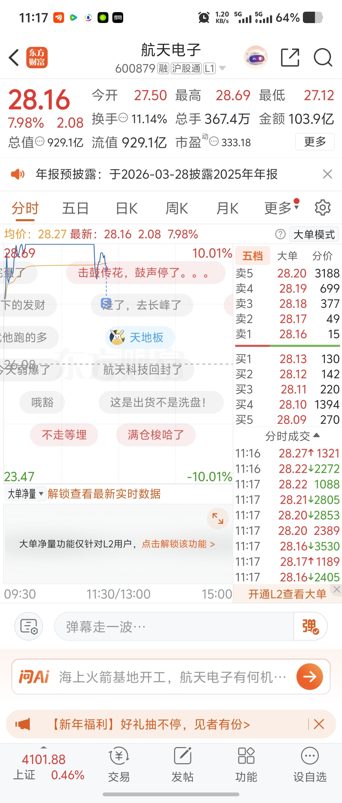 $航天电子(SH600879)$ 群里早上发通知说撤退