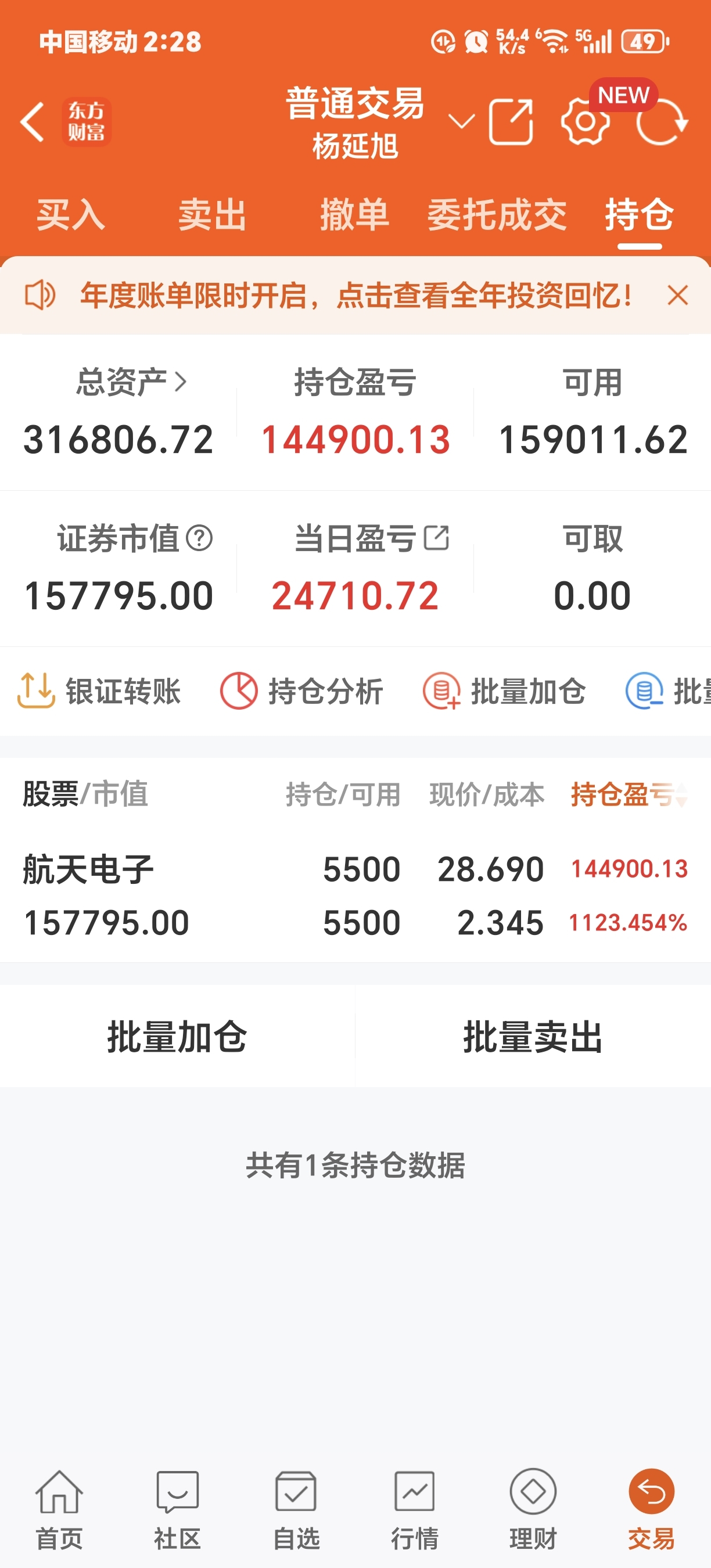 $航天电子(SH600879)$ 出来一半,半年内不再动了