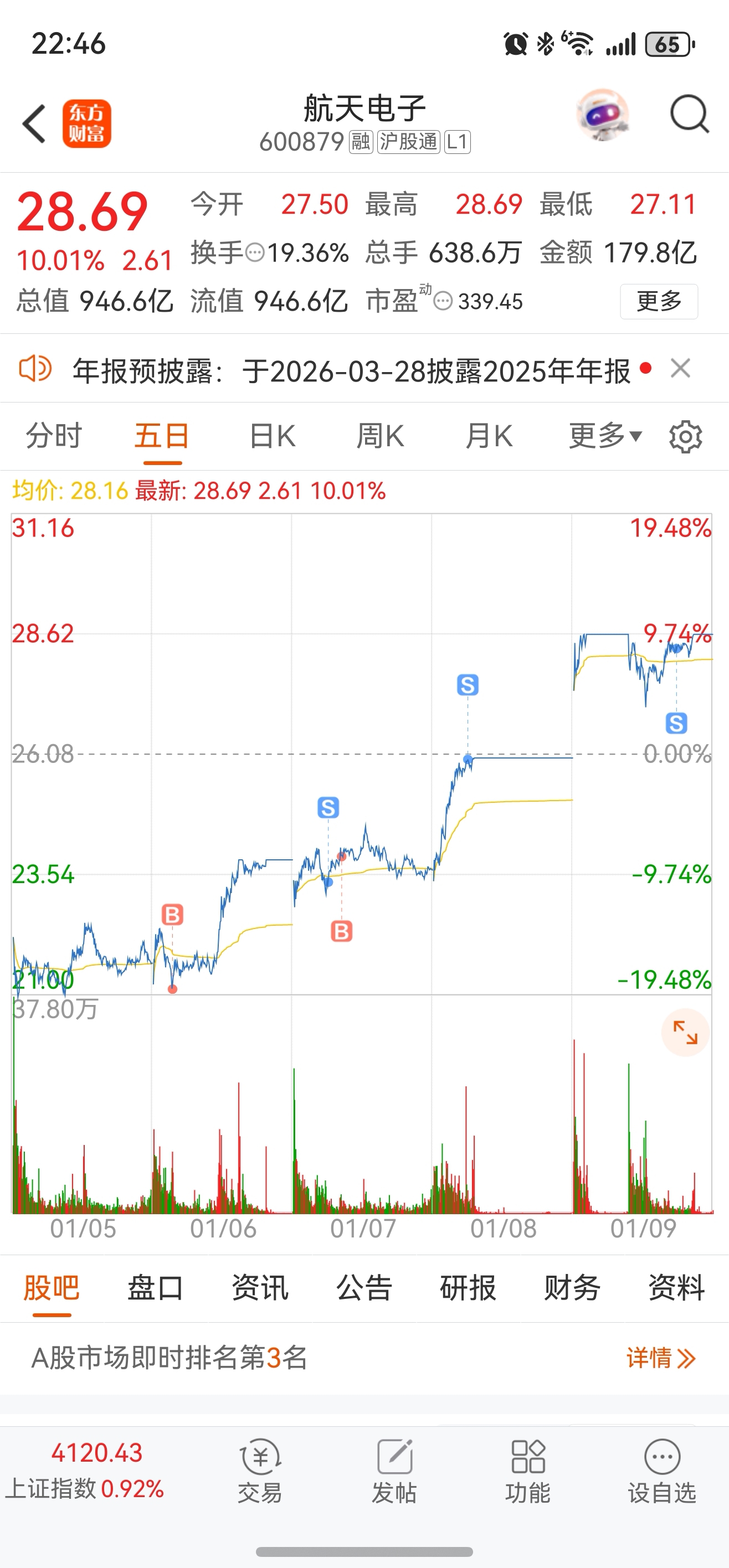$航天电子(SH600879)$ 4天3个板,溜了
