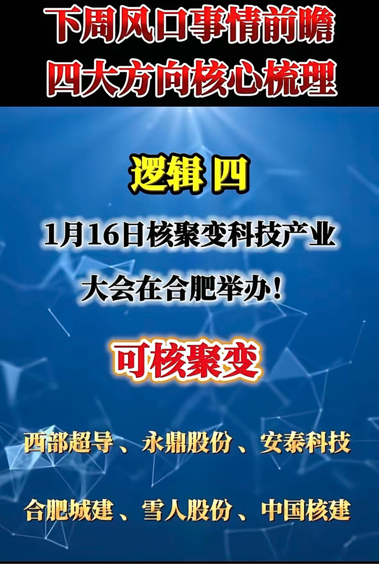 下周风口大揭秘!四大方向核心梳理,1月16日合肥聚变科技产业大会等你来!