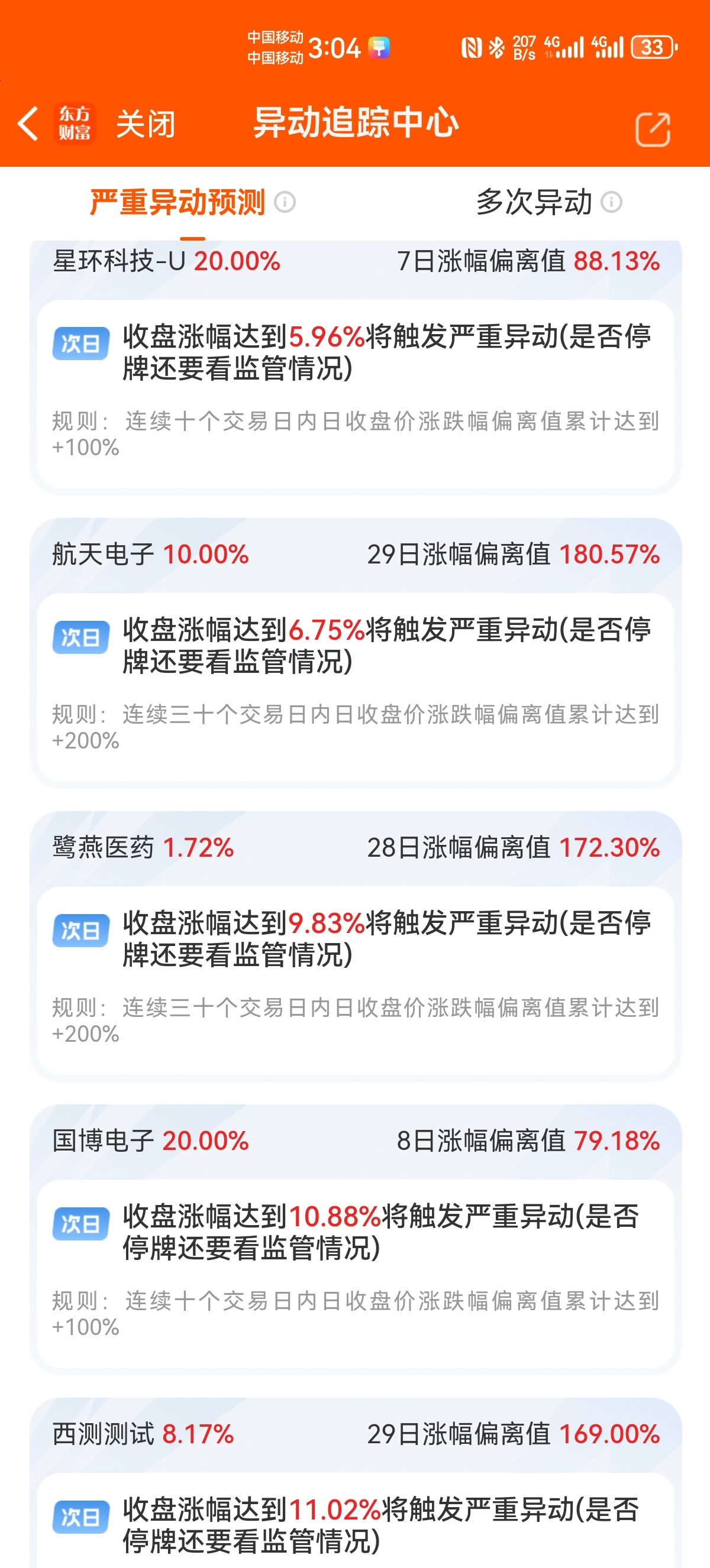 29日异动180。明天涨停就是30日异动才190。是不是刚好出异动监管。所以根本