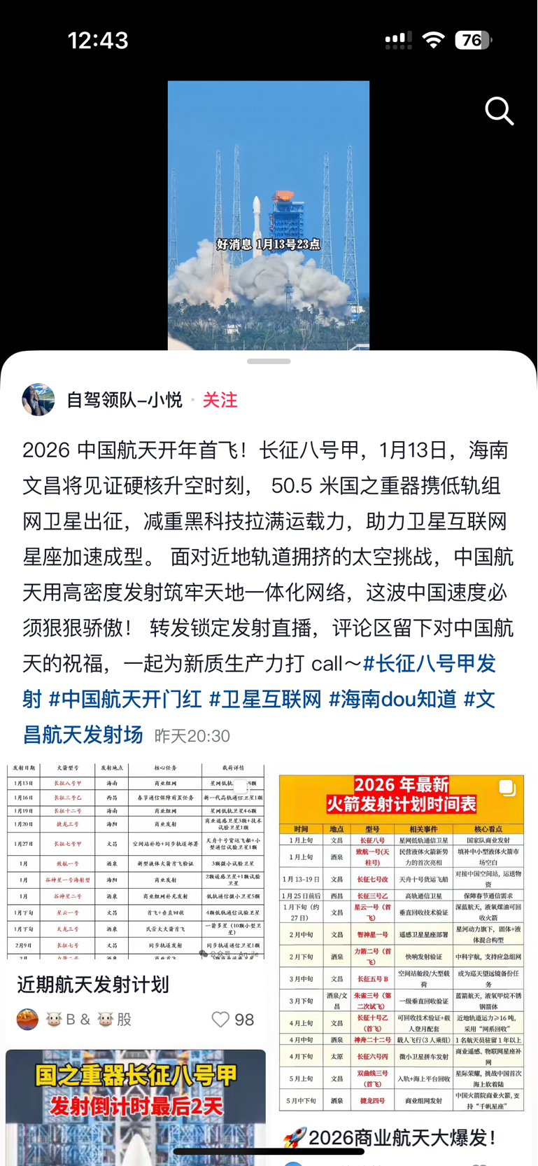 $航天电子(SH600879)$ 下午坐稳扶好,火箭起飞