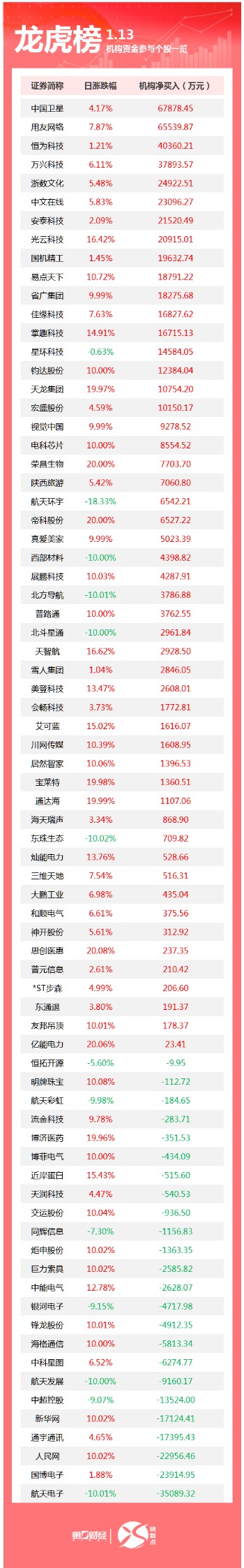 龙虎榜丨机构今日买入这51股,卖出航天电子3.51亿元