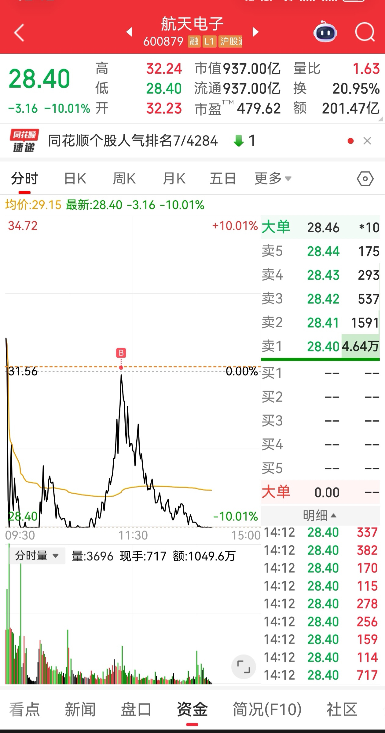 $航天电子(SH600879)$ 抄顶成功,第一次这么精准,不知道还有解套的机会没