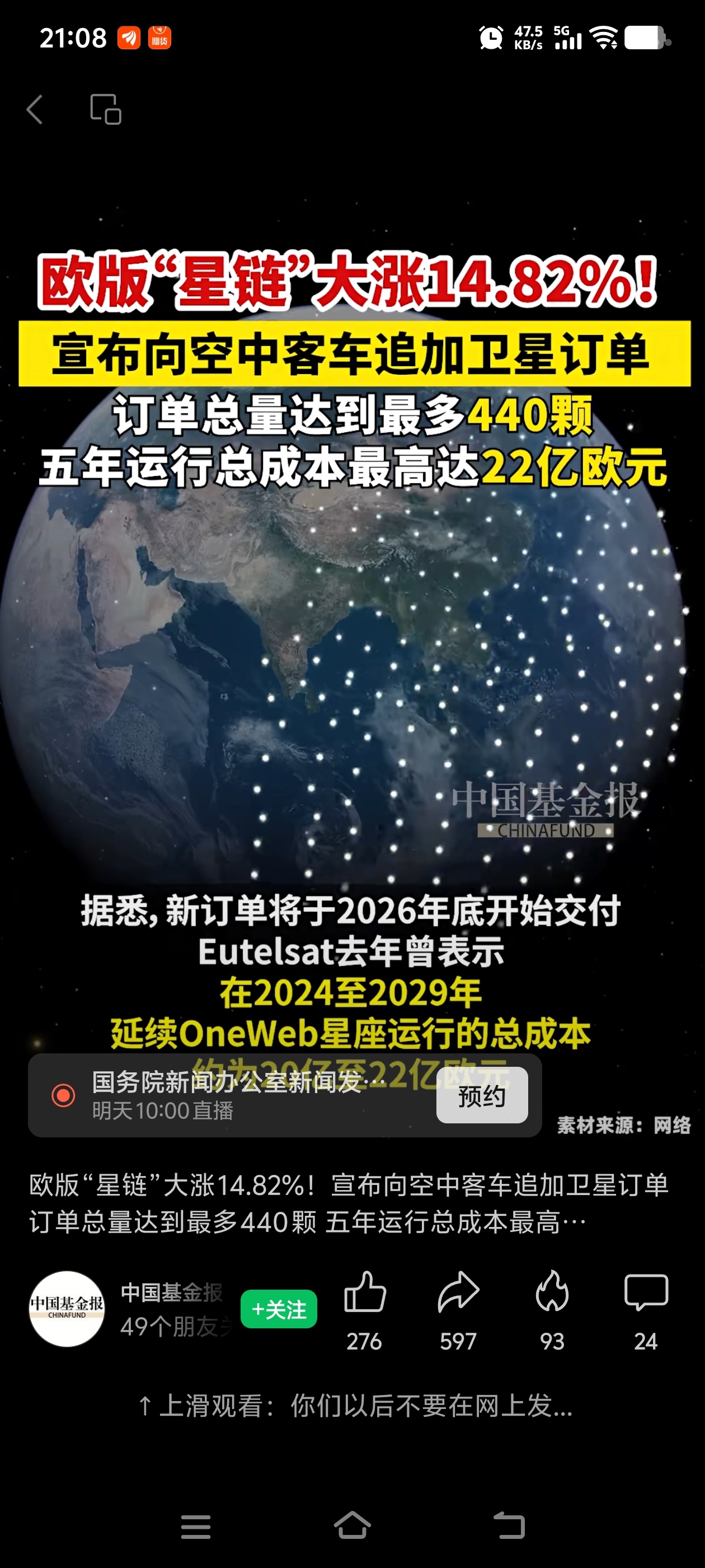 欧洲星链,明天买航天电子,所有卫星都要用,业绩大爆发前夜