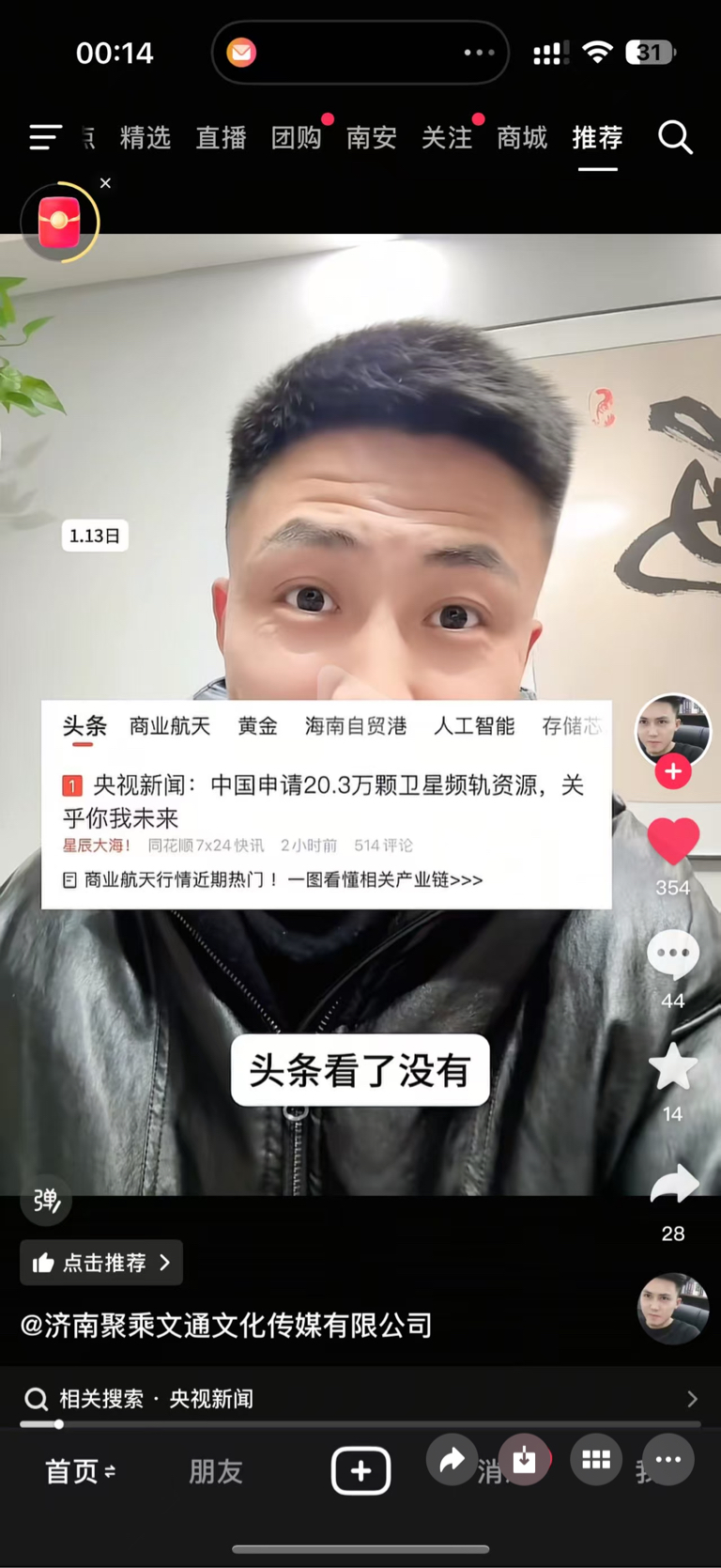$航天电子(SH600879)$ 央视新闻把头条给你了,还置顶了,珍惜吧,还回海上回收成功了