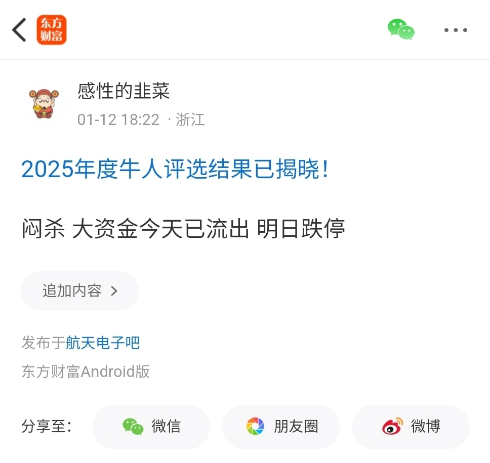 温馨提示: 1.根据《证券法》规定,禁止编造、传播虚假信息或者误导性信息,扰乱证券市场;2.用户在本社区发表的所有资料、言论等仅代表个人观点,与本网站立场无关,不对您构成任何投资建议。用户应基于自己的独立判断,自行决定证券投资并承担相应风险。《东方财富社区管理规定》